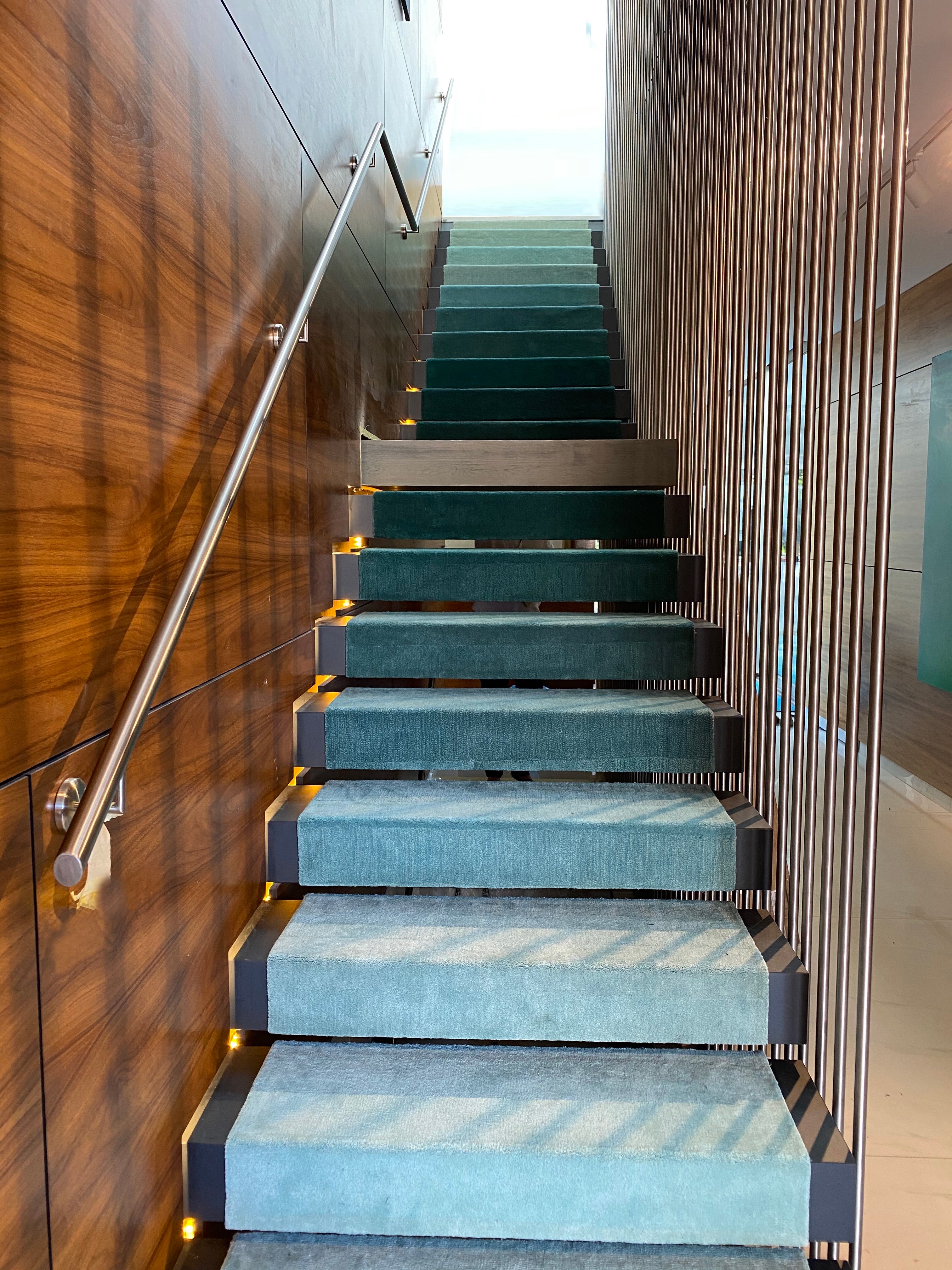 A Gradient Forest stair runner was hand-tufted in 100% New Zealand wool to define the vertical journey of this Rose Bay residence. The tonal greens create a soft transition from deep forest to pale mist, bringing depth, freshness, and natural elegance into the architectural space. Designed in collaboration with Lorna Sinac Design, the runner reflects Tappeti’s dedication to refined residential design and bespoke craftsmanship.