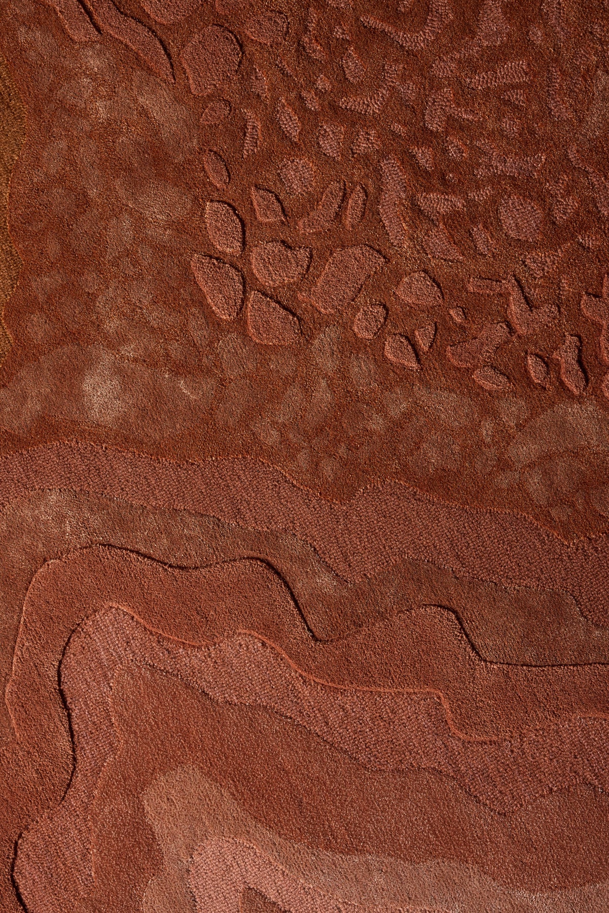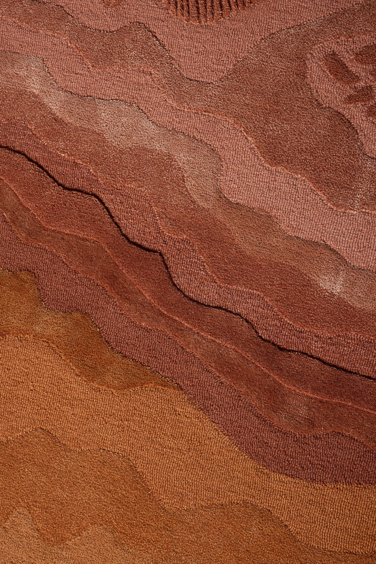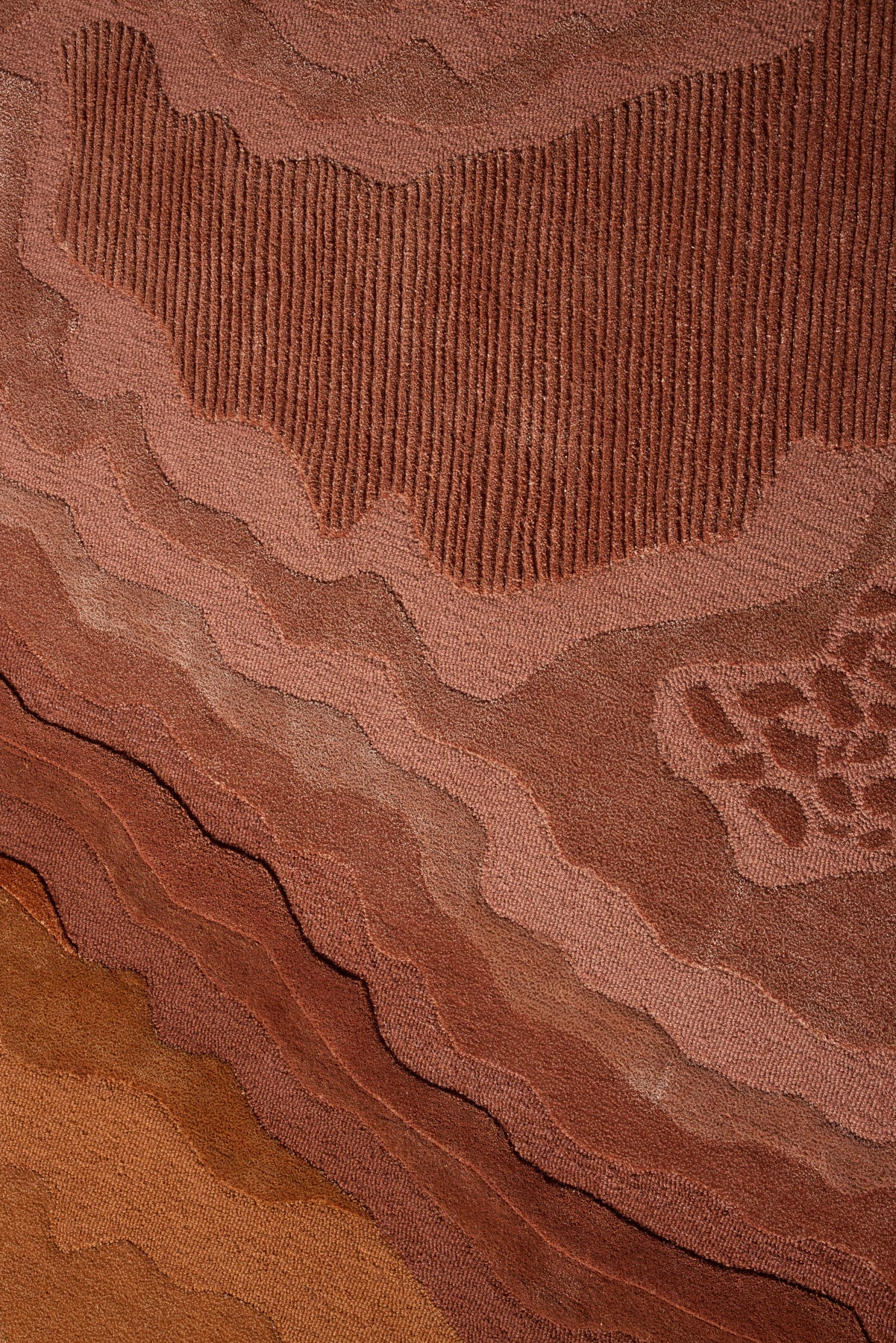 Aqualis Rust presents an intricate interplay of organic forms and rich, fiery textures. Its surface unveils undulating layers rendered in a sophisticated palette of deep terracottas, burnished oranges, and striking reds, evoking the raw grandeur of geological wonders. The design features precise, etched details and a dynamic interplay of pile heights, including 12mm finished cut pile, 12mm finished loop pile, and 15mm raised cut pile, creating a tactile topography that invites exploration and mirrors its visual depth. Meticulously hand-tufted from a luxurious blend of New Zealand wool with luminous art-silk, Aqualis Rust offers both exceptional beauty and enduring quality.