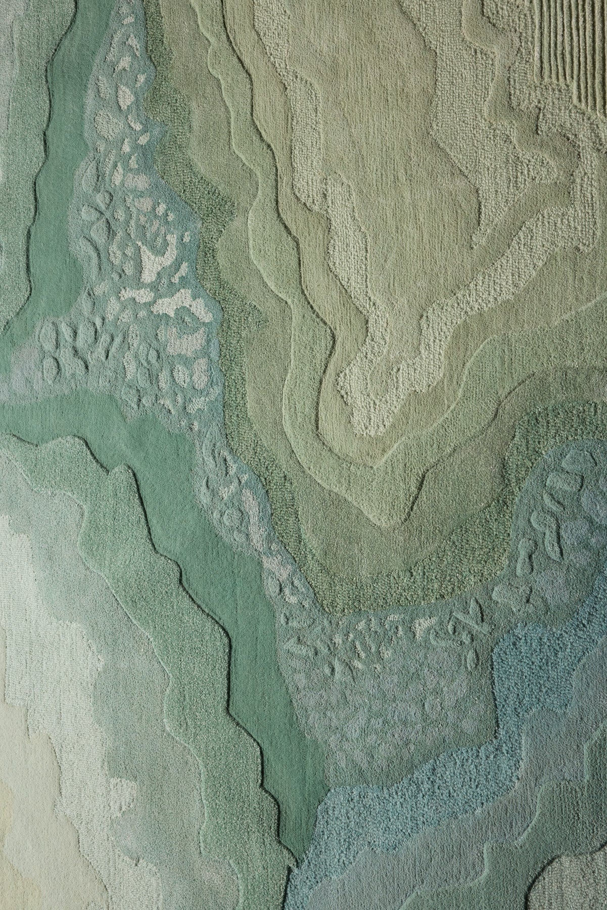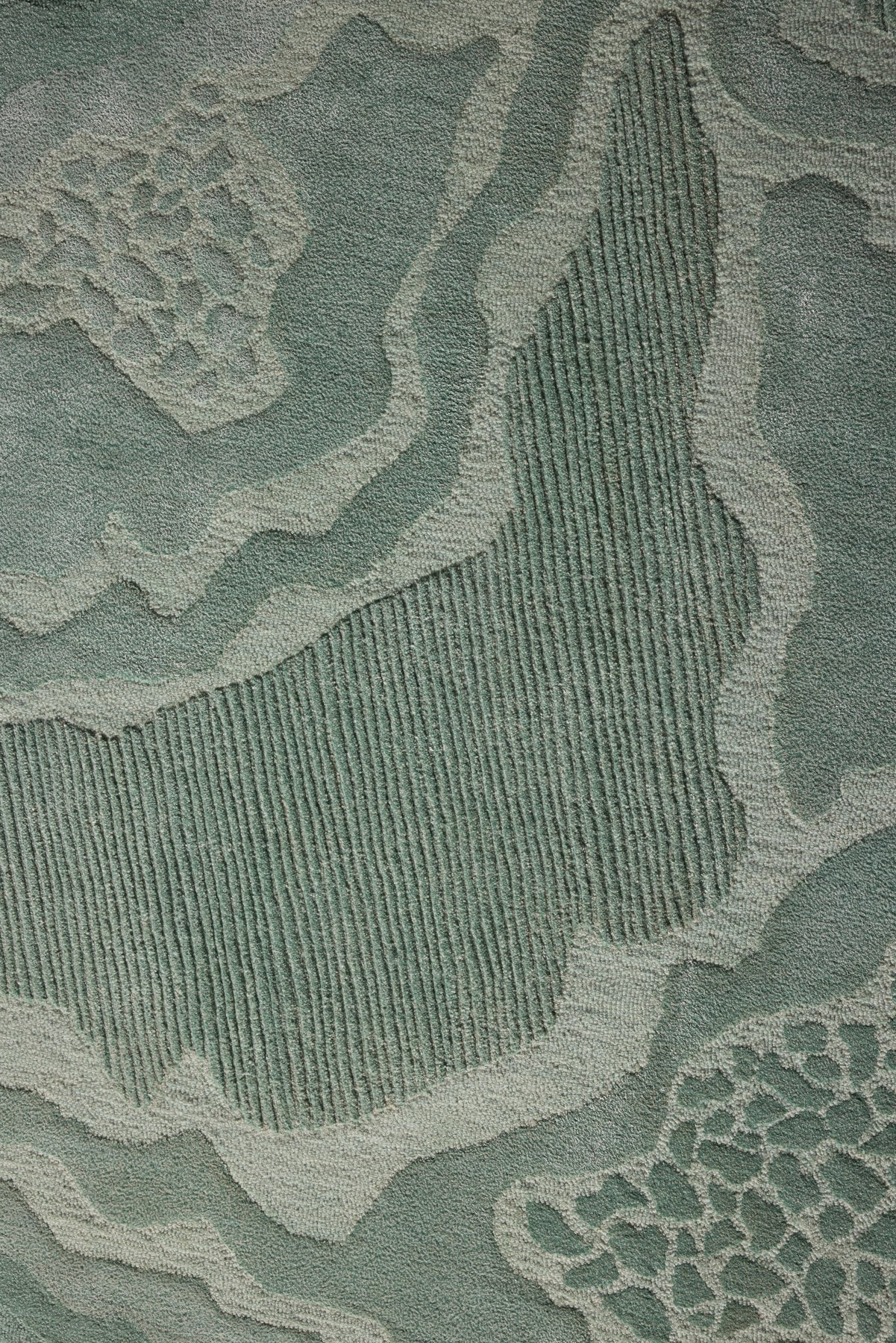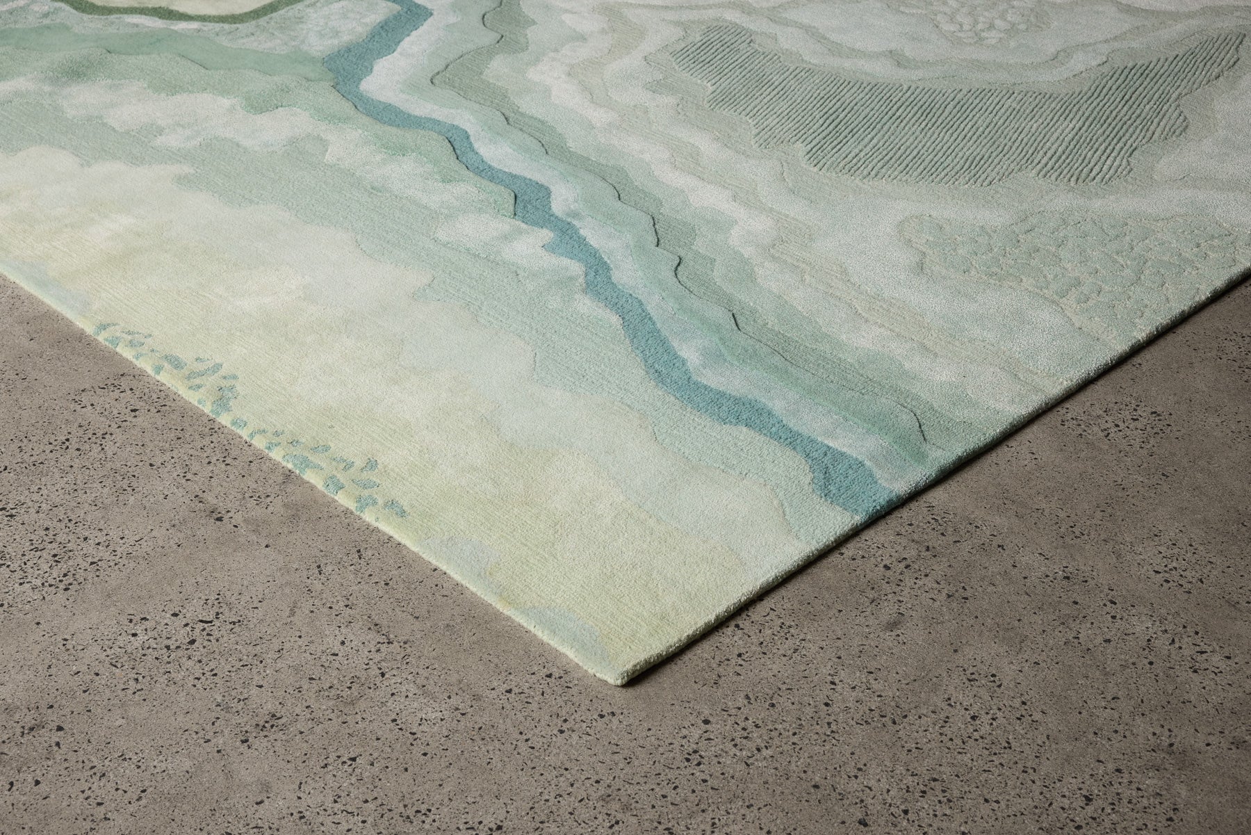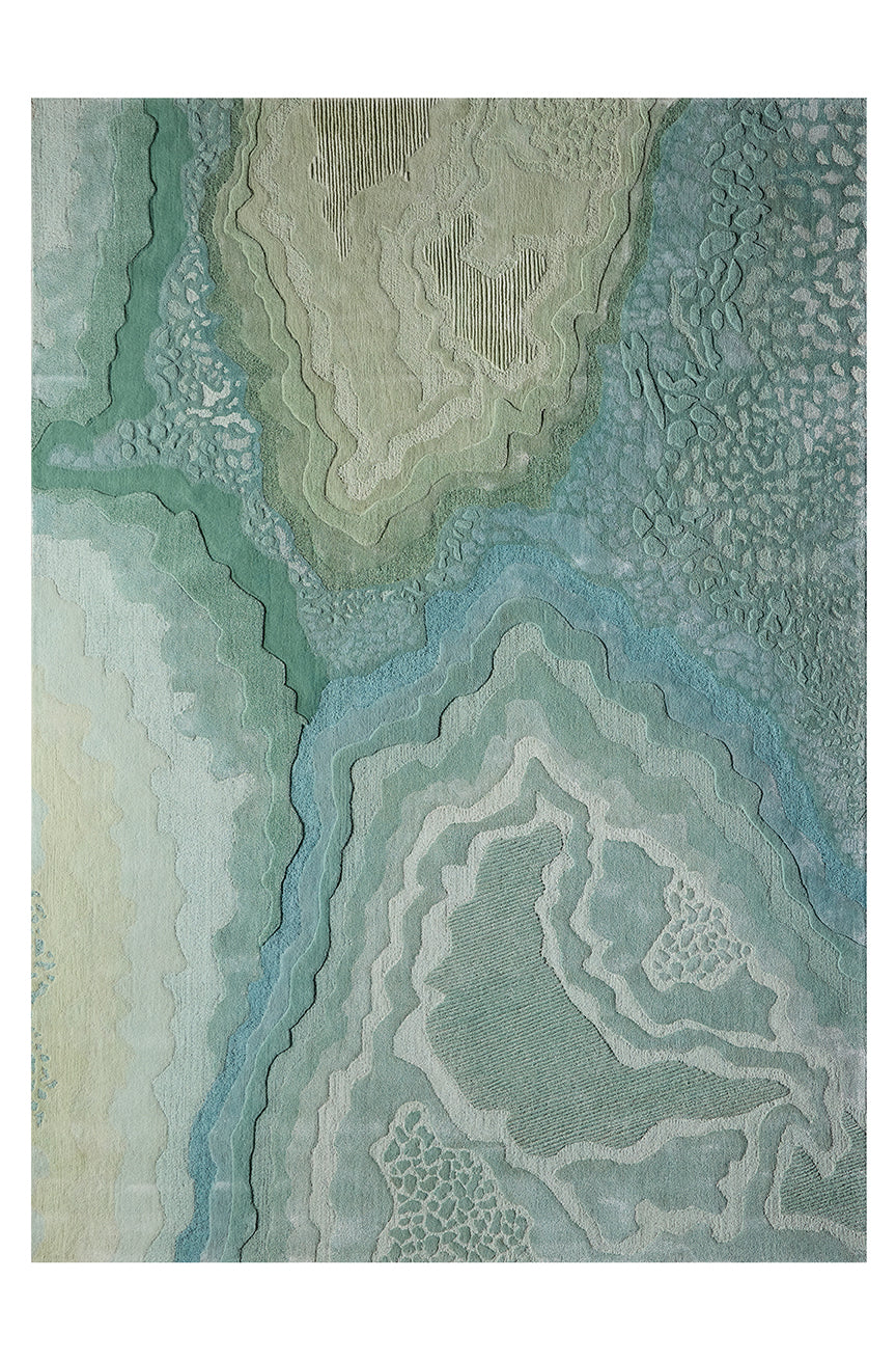 Created in collaboration with Cocoon Interiors, Aqualis Turquoise presents an intricate interplay of organic forms and cool, luminous textures. Its surface unveils undulating layers rendered in a sophisticated palette of invigorating turquoises, cool aquas, and subtle greens, evoking the breathtaking beauty of clear, flowing waters. The design features precise, etched details and a dynamic interplay of pile heights, including 12mm finished cut pile, 12mm finished loop pile, and 15mm raised cut pile, creating a tactile topography that invites exploration and mirrors its visual depth. Meticulously hand-tufted from a luxurious blend of New Zealand wool with luminous art-silk, Aqualis Turquoise offers both exceptional beauty and enduring quality.