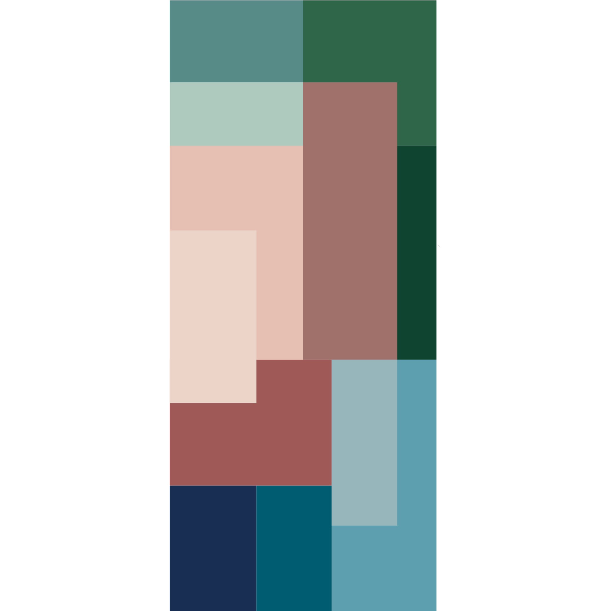 Complementing and contrasting fields of colour intersect each other in this geometric.