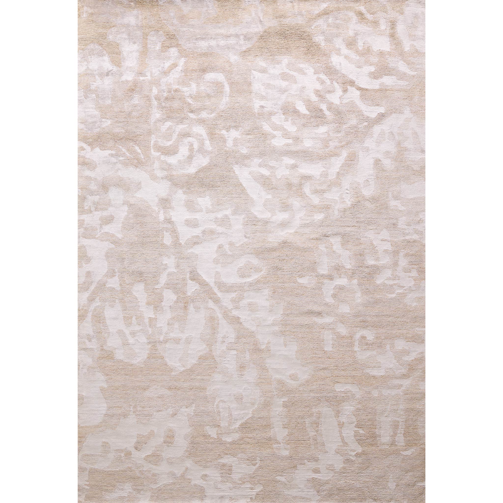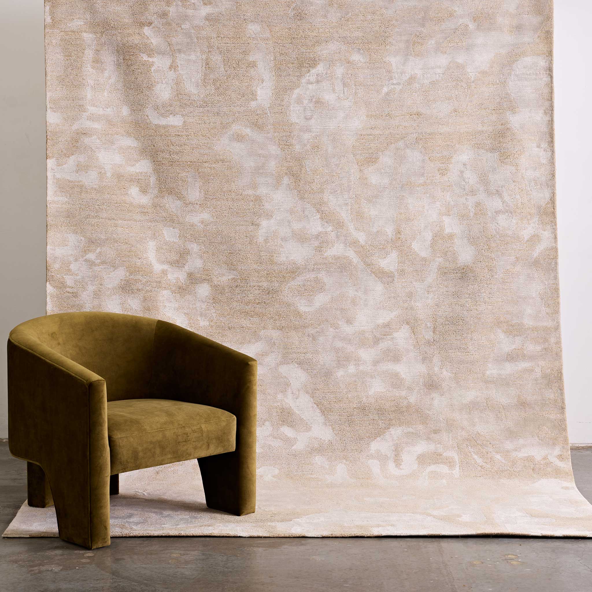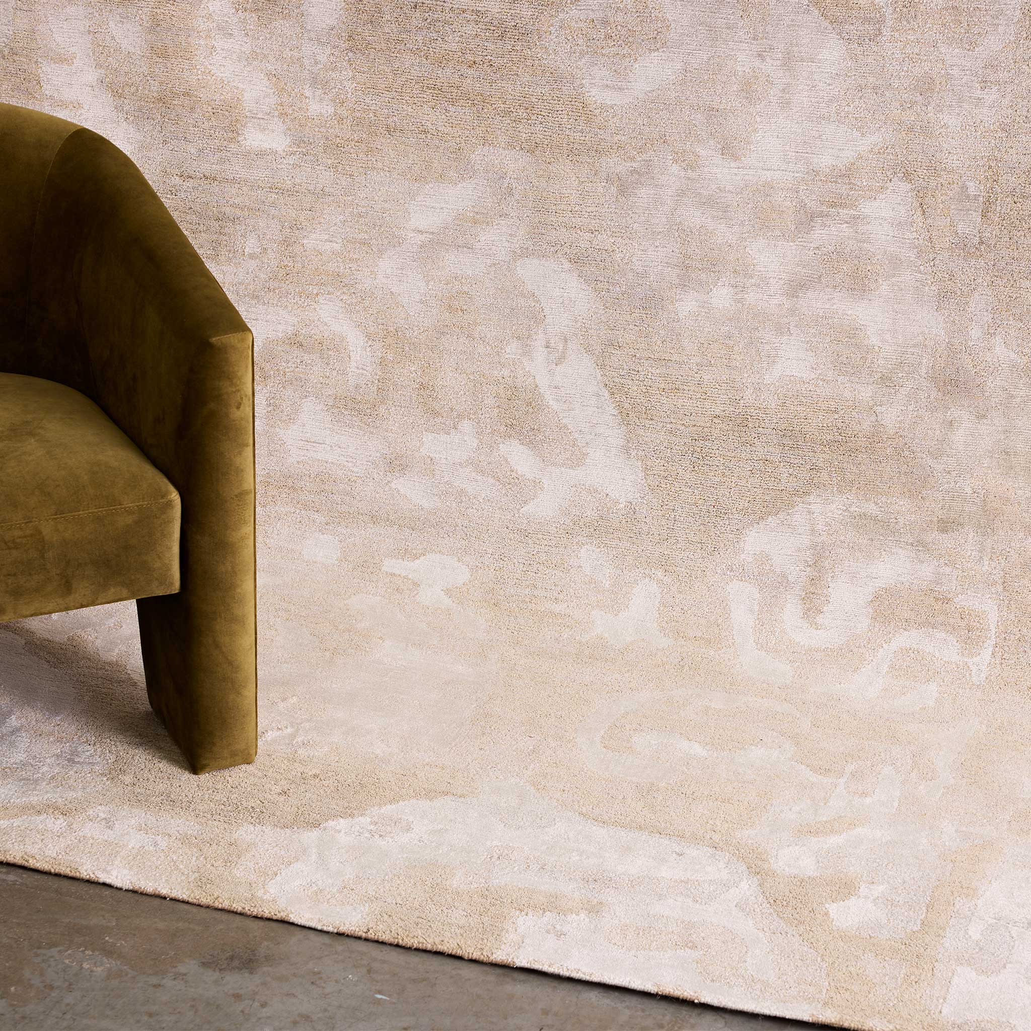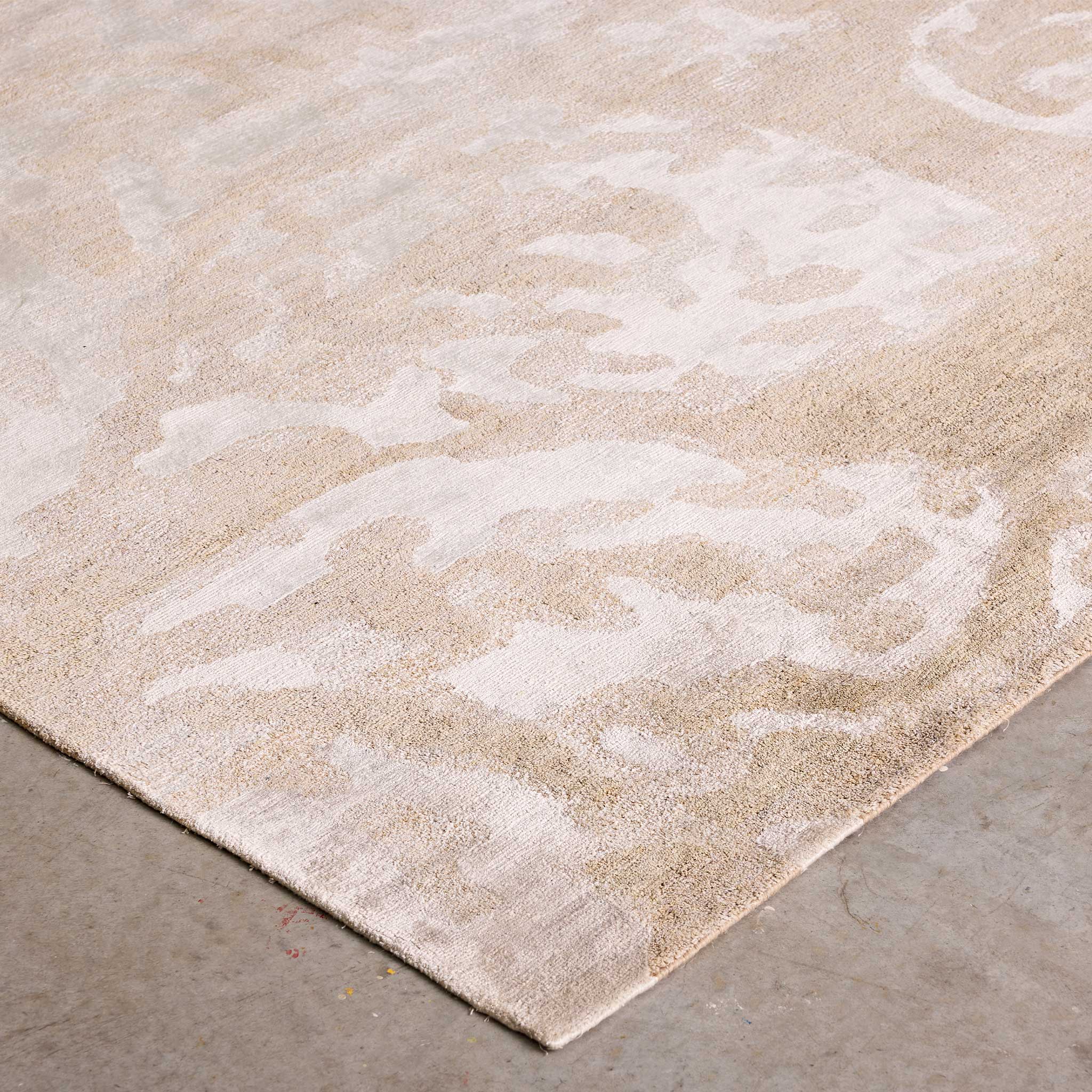 Hand-knotted by artisans in Nepal in a single colour, the different fibres create the pattern in contrasting matte hemp and artsilk.