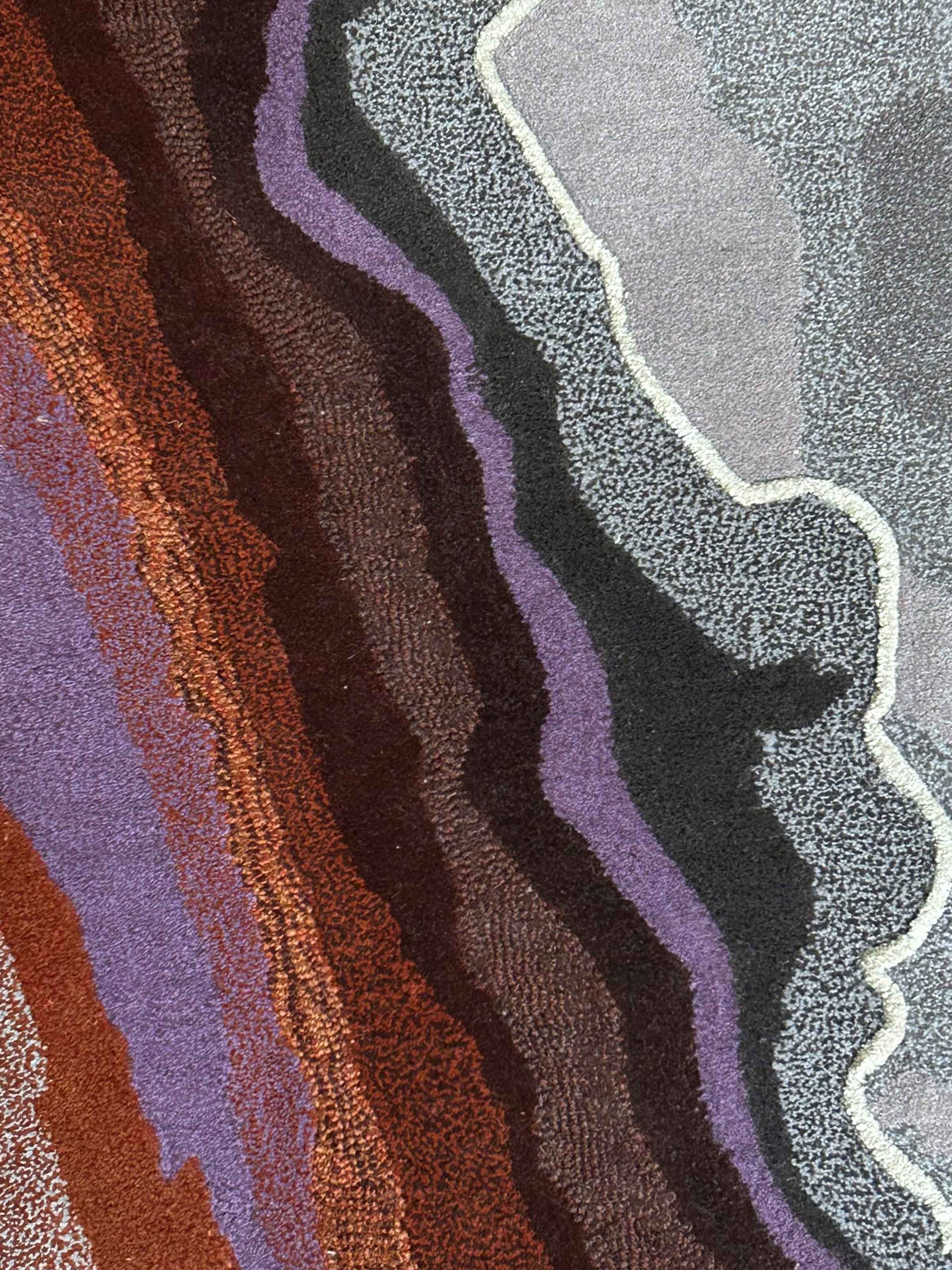 The Tappeti Gradient Carnelian - Streaks of Amethyst rug showcases an artful color ramp, meticulously hand-tufted in New Zealand wool with accents of art-silk. This exquisite example of Tappeti's celebration of color-play features soft grey taupes that gracefully progress through deep dark brown, culminating in striking amethyst tones. The transitions between these shades are achieved with hand-tufted stippled areas, creating a nuanced spectrum that adds both depth and visual intrigue to interiors.