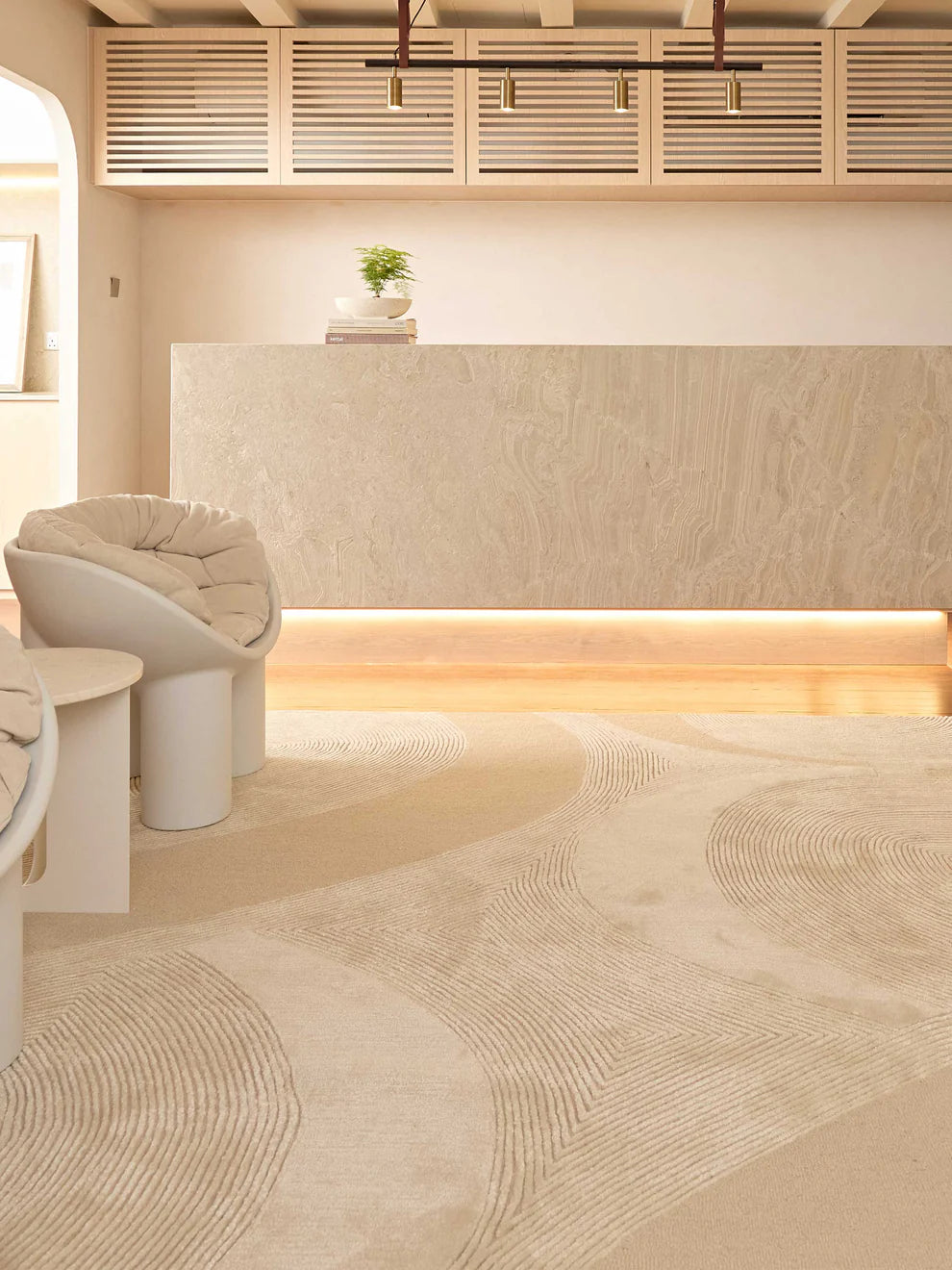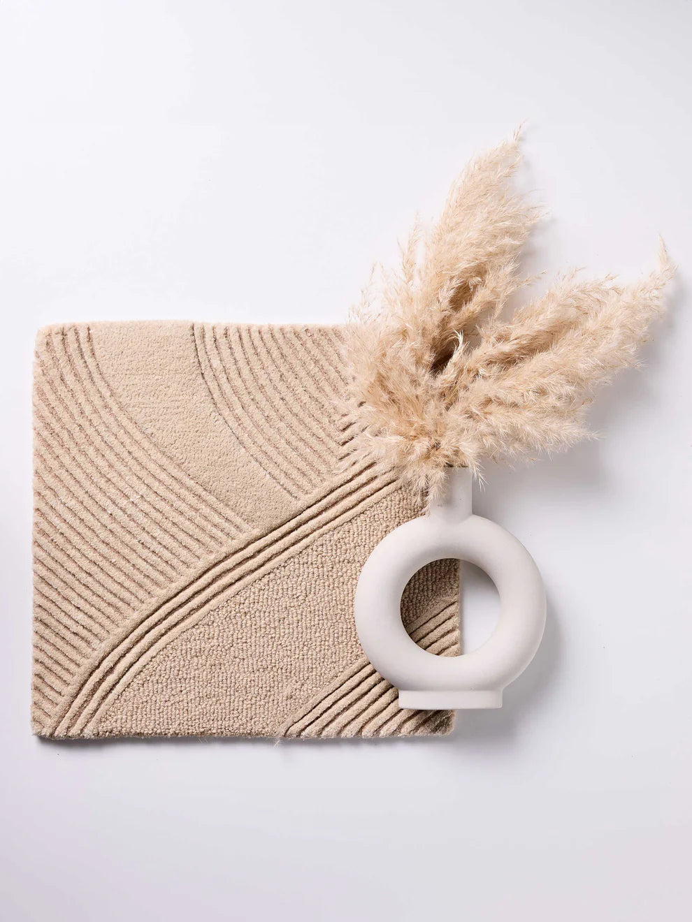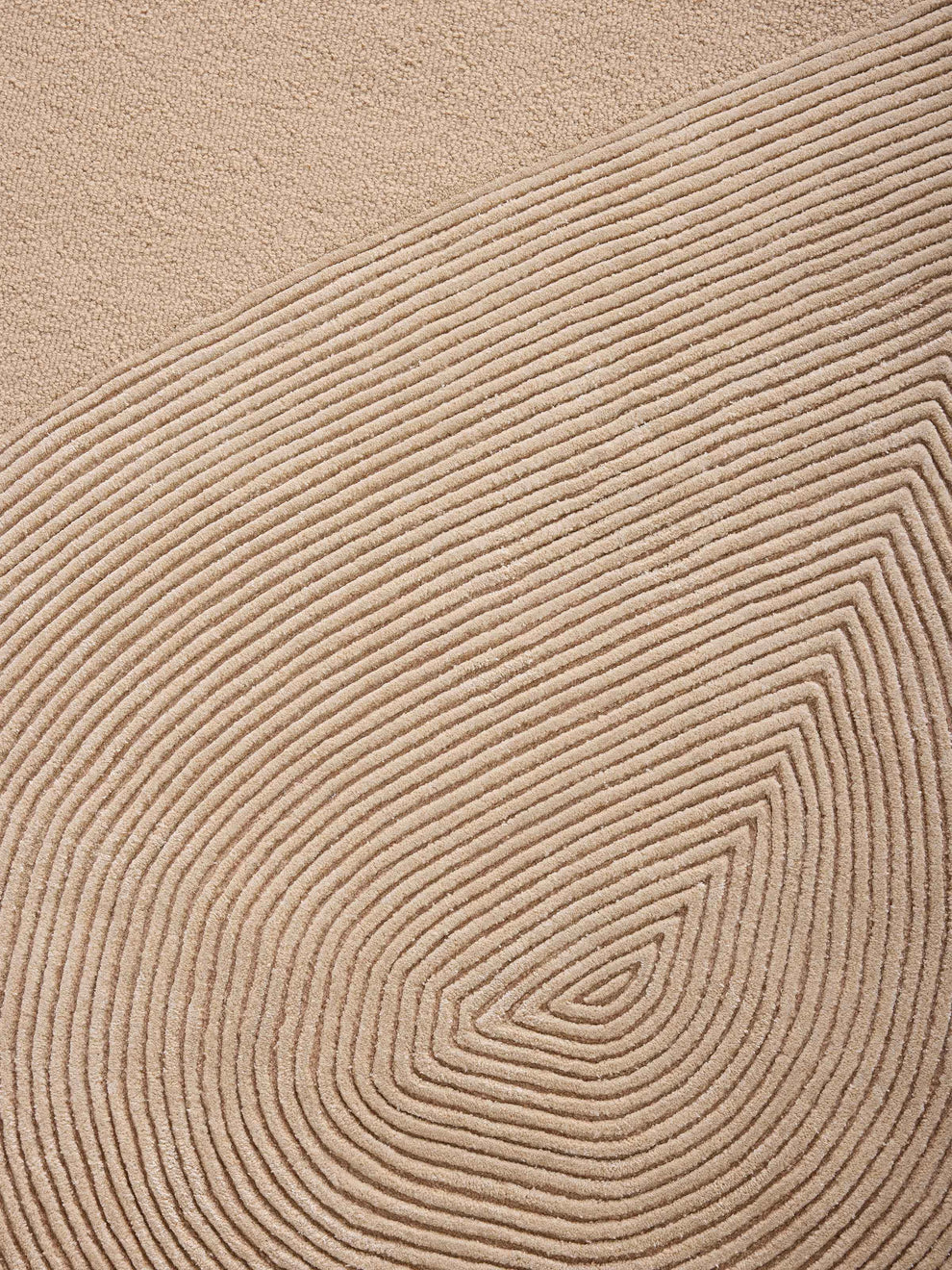 "Huit is a creation that captures the serene essence of nature, transformed into a tactile and visual experience. Inspired by the art of sculpting sand into mesmerizing patterns, the rug evokes a sense of calm and contemplation, inviting one to experience the quiet beauty of simplicity. The palette of cream and taupe is carefully chosen to mimic the soft, timeless tones of sand, emphasizing a connection to the earth. The design is a dance of lines—gentle waves, straight paths, and concentric circles—that come together to create a sense of harmony and balance. Each pattern is meticulously crafted, offering a visual and sensory journey. In "Huit," space and texture are as much a part of the design as the patterns themselves. The absence of embellishments allows the intricate design to take center stage, celebrating the beauty found in emptiness and the elegance of restraint. This rug offers a moment of stillness in the midst of a busy world, allowing you to reconnect with the natural rhythms of life.”