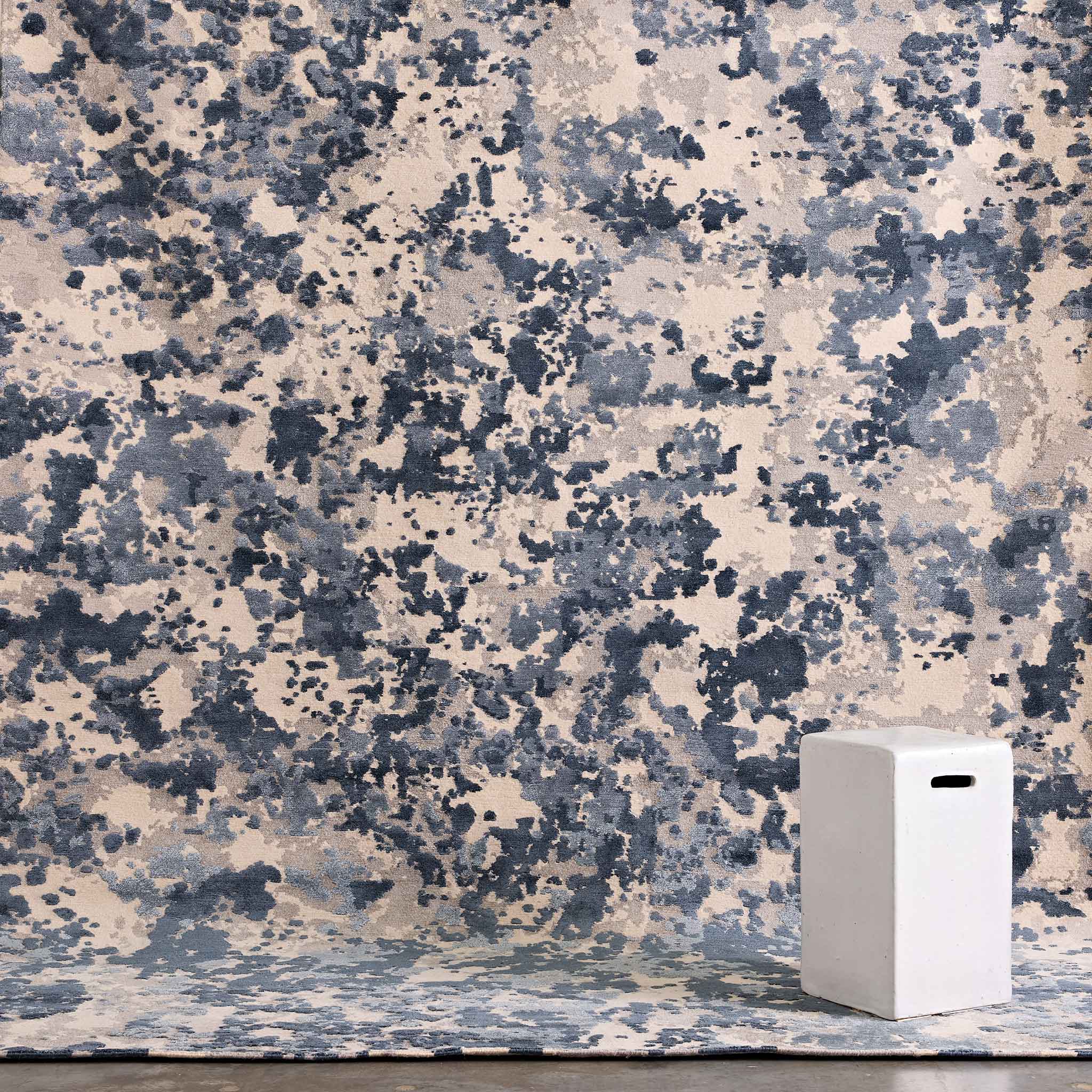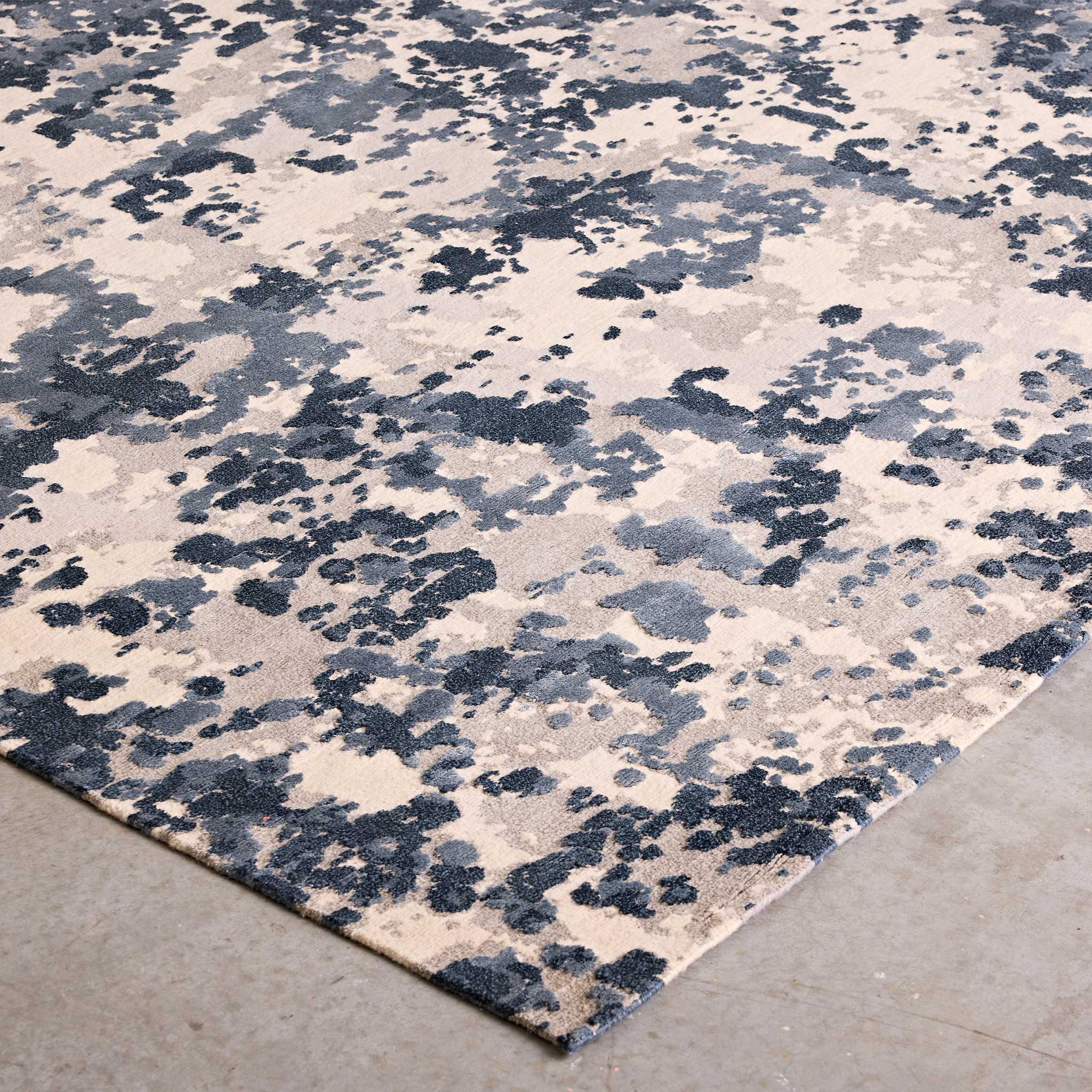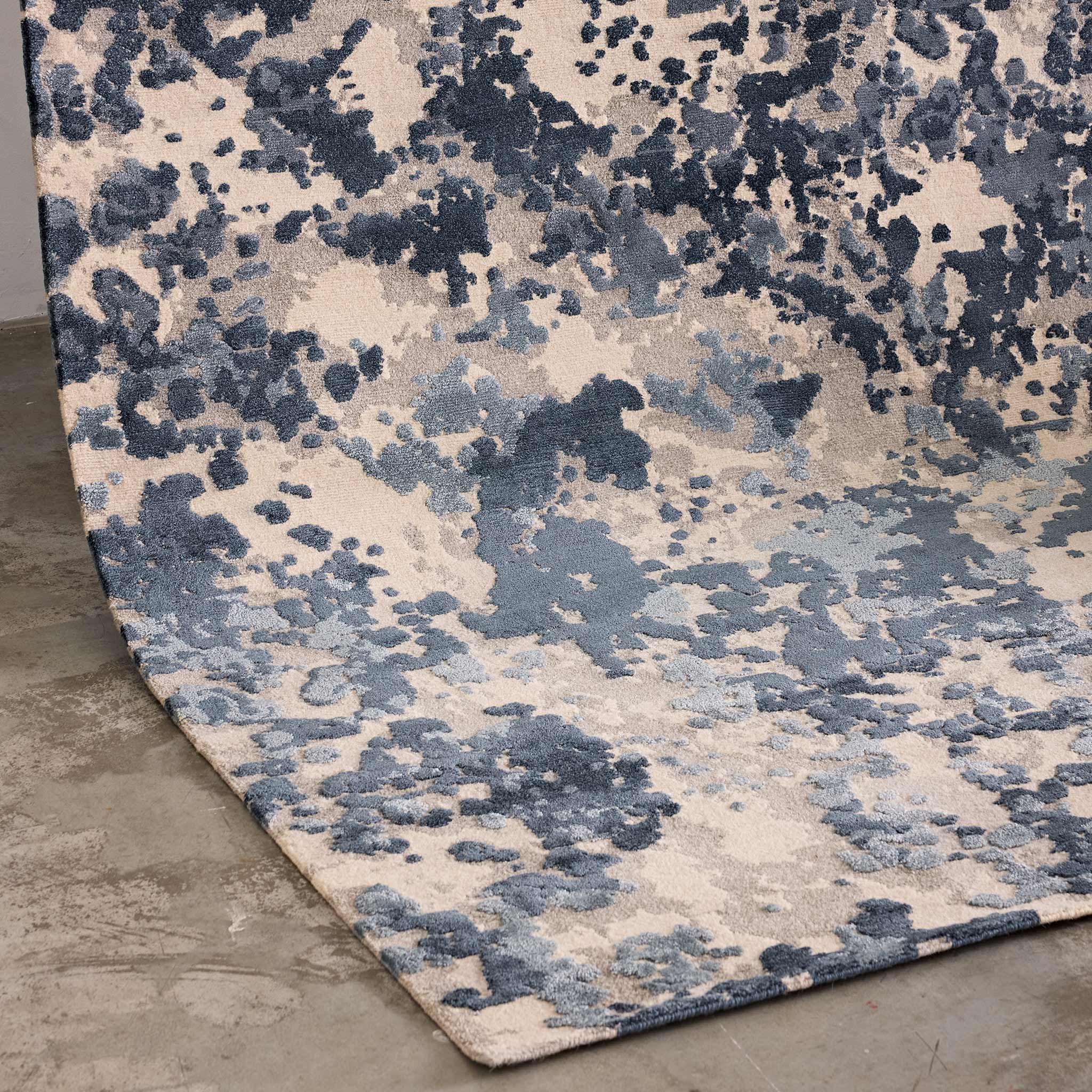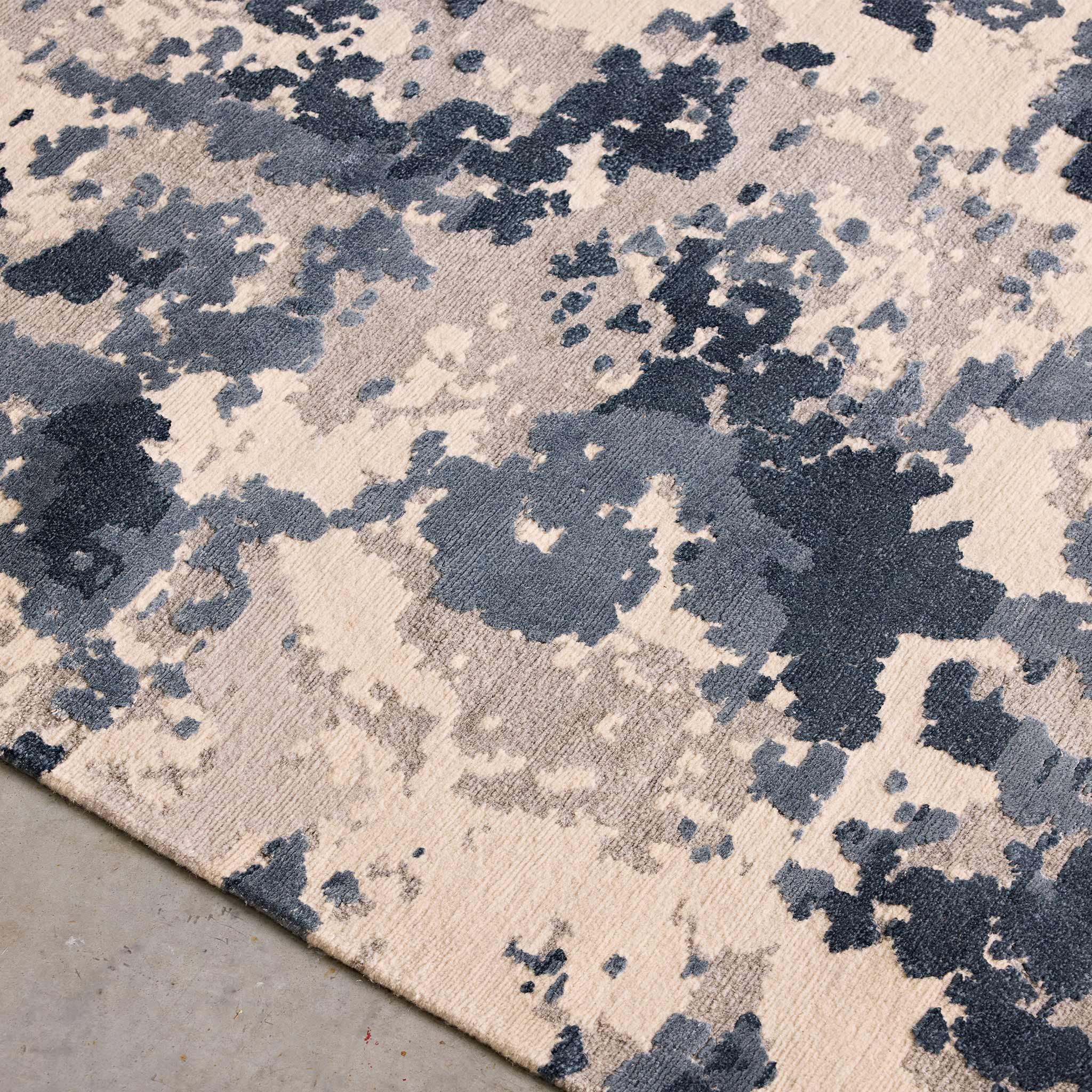 - Hand-knotted in Nepal in Tibetan wool, linen, and art-silk