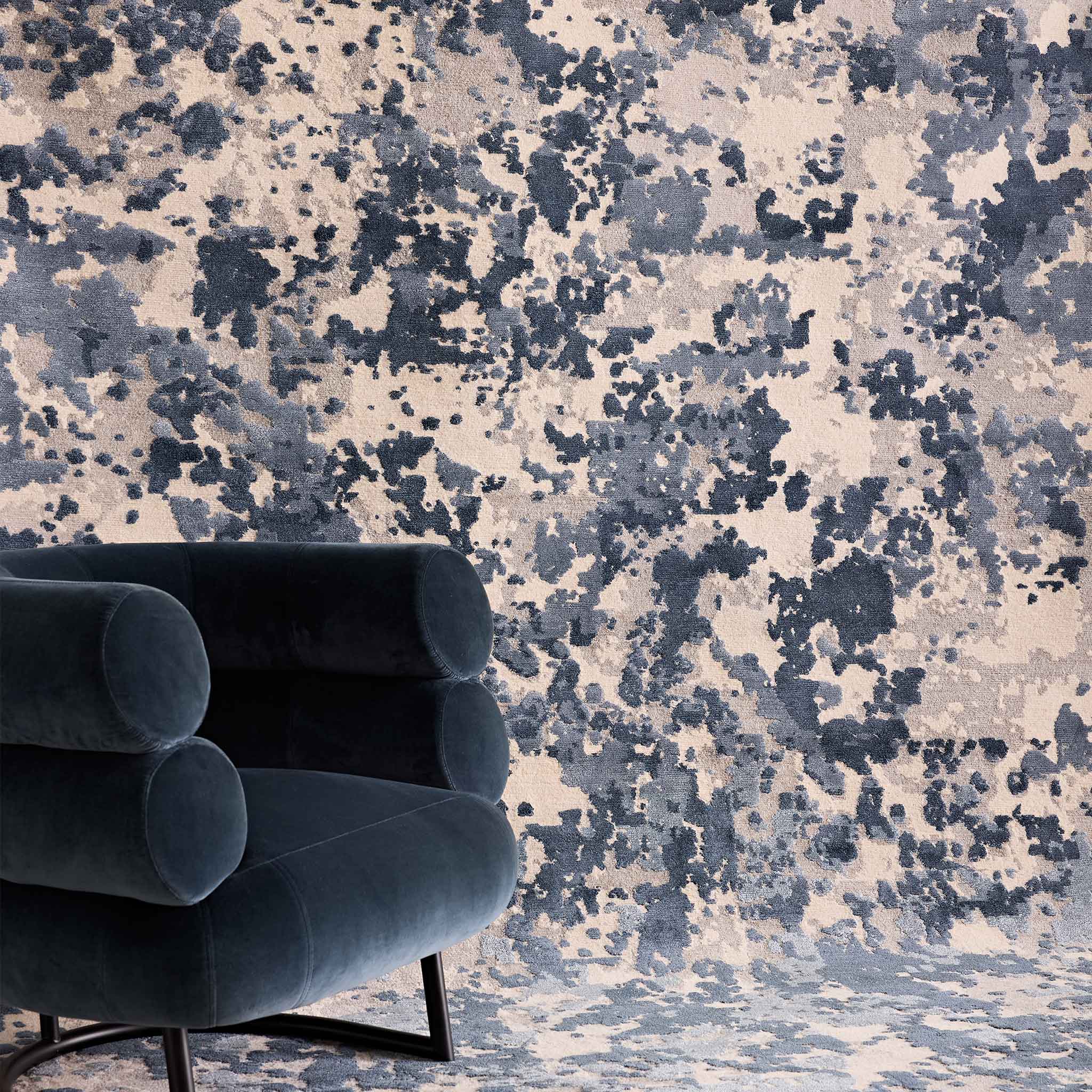 Sumptuous tones of inky navy across a neutral base.