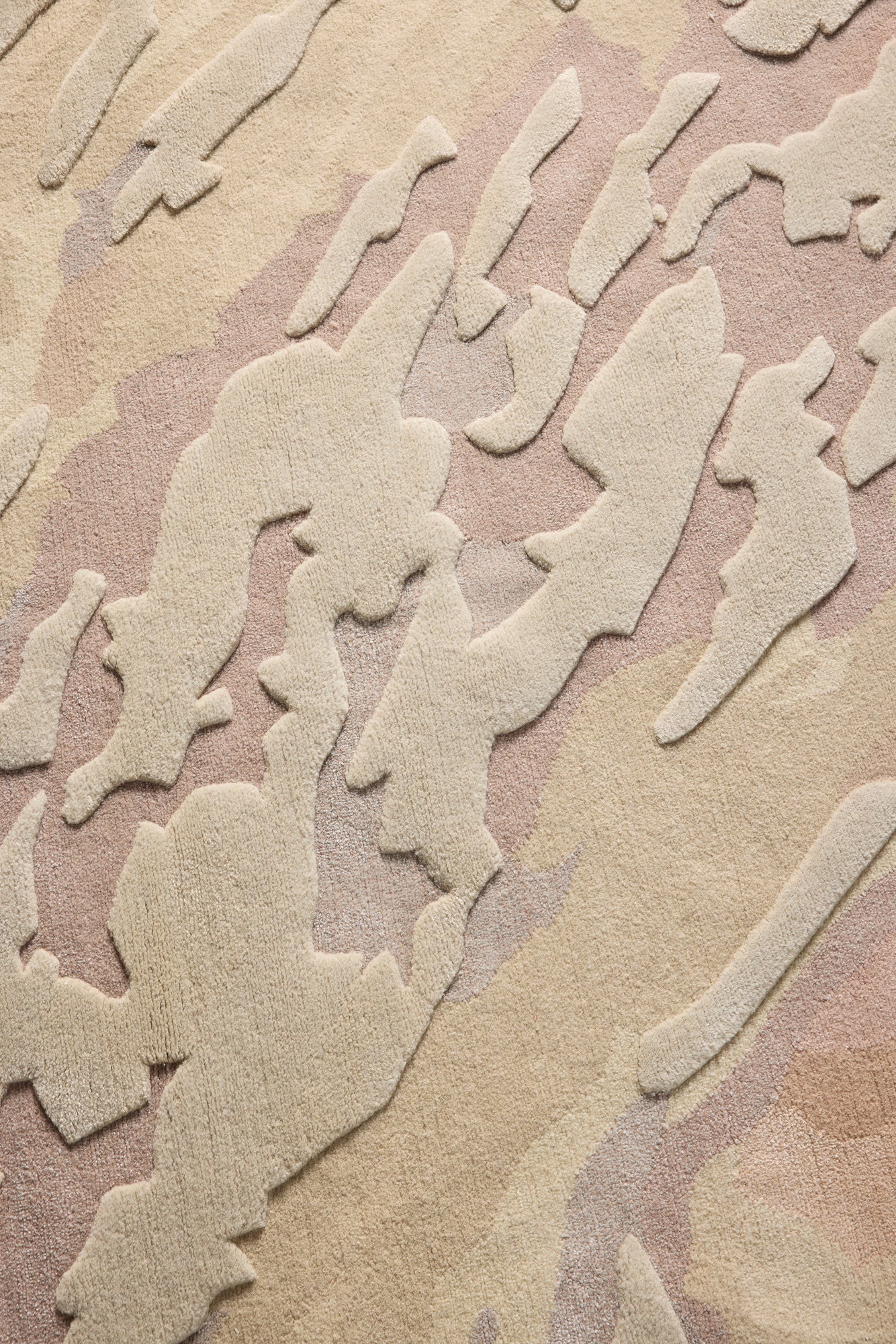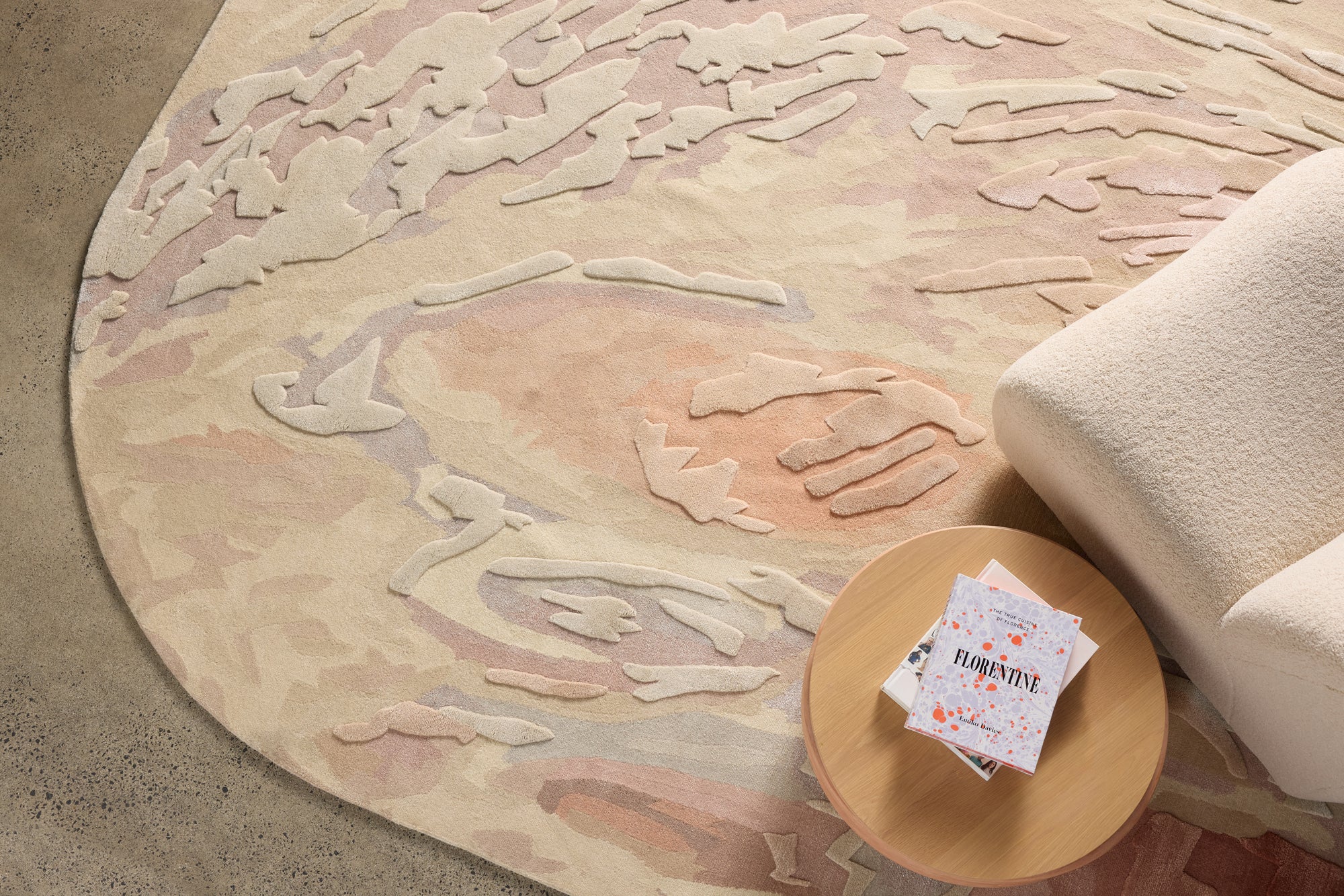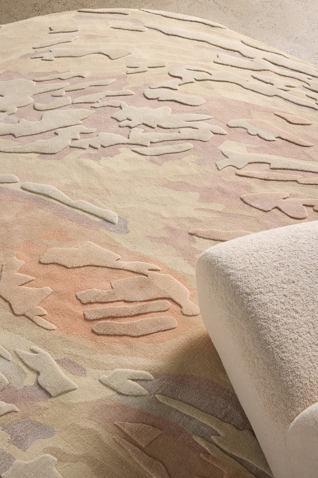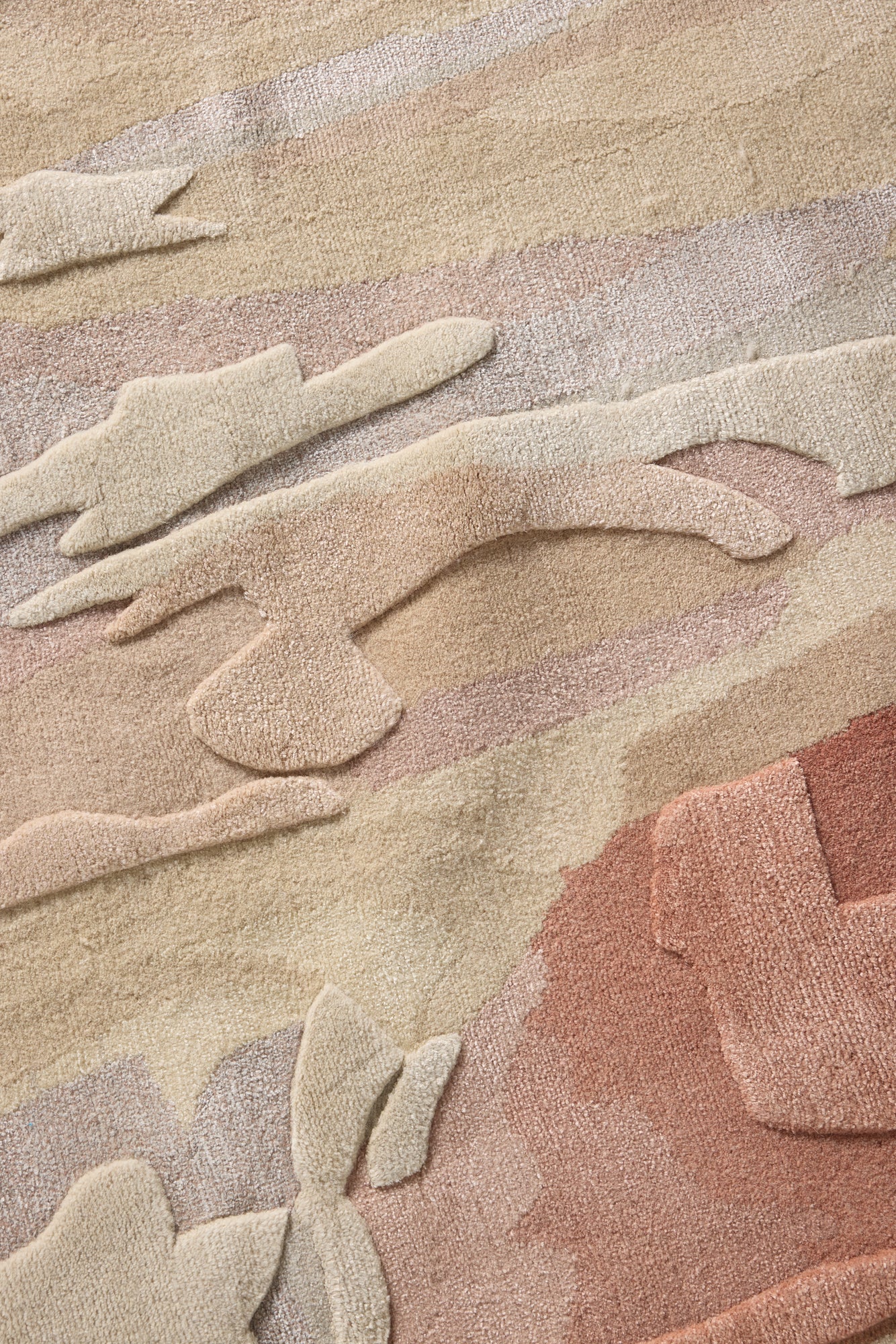 Elysium | Lissia captures the soft glow of dusk, where fading light blends into gentle warmth. Its palette moves through raspberry, fraise, peach, apricot, seashell, vale, rosy tones, misty pinks, silvers, and soft fawns—creating a harmonious gradient that feels serene, delicate, and contemporary. Hand-knotted with Tibetan wool and Art-Silk, the rug features subtle sheen and depth, with raised detailing that allows light to glide across its surface. Lissia brings a quiet, refined elegance to any interior.