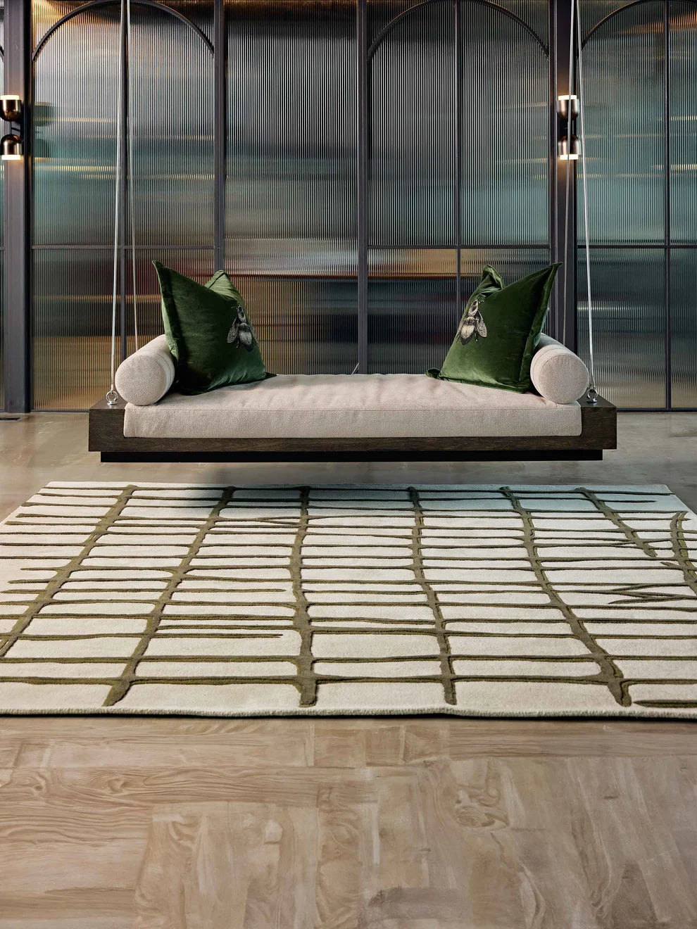 Elliot Barratt, renowned founder of Elliot James, defines his design philosophy with three words: elegance, eclecticism, and timelessness. Inspired by the serene beauty of the beach and nature, Barratt’s designs often capture the essence of the natural world through intricate patterns and textures. By combining various embossing and weaving techniques with a sophisticated, muted palette, his work reflects the belief that beauty resides in everyday life. Barrett’s design is an abstract creation inspired by forests and woodland landscapes, featuring playful lines that provide a striking contrast and dynamic presence in any space.
