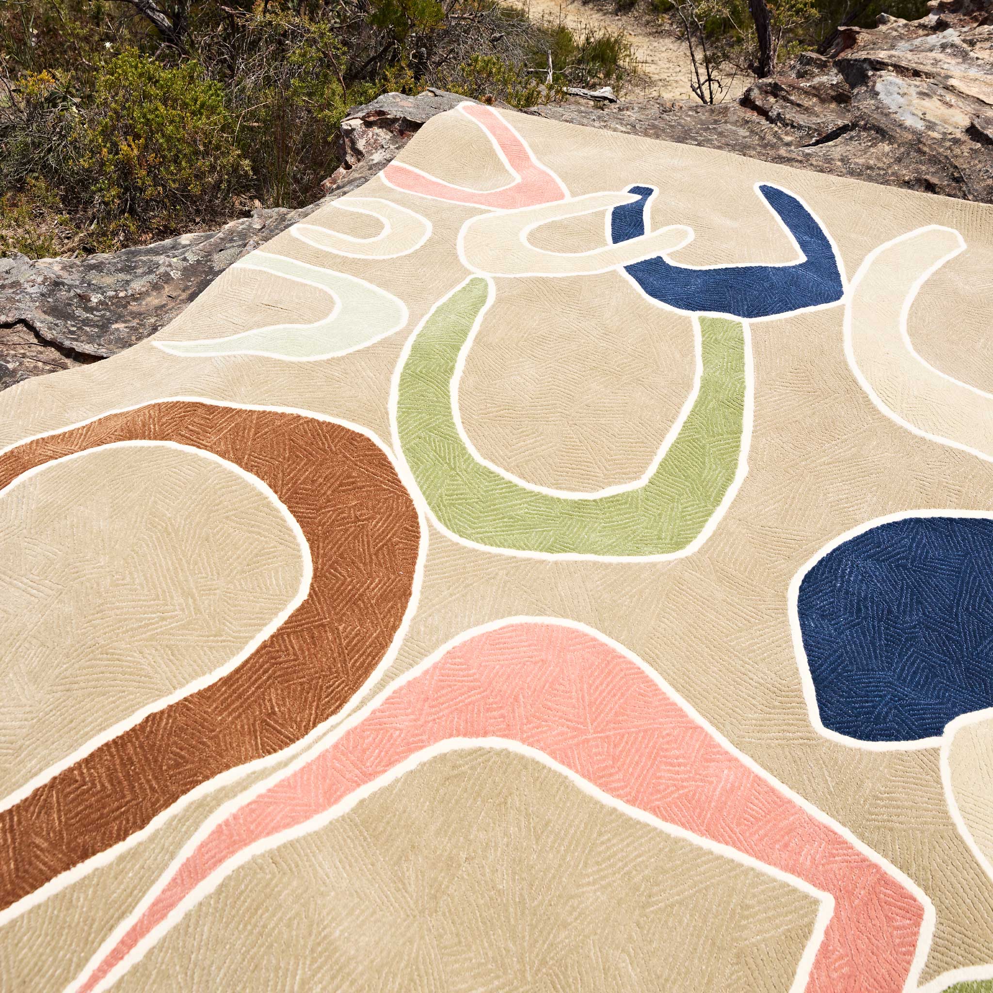 The Indigenous Collection translates original artworks by First Nation artists into three-dimensional luxury rugs using the finest materials such as wool and silk. The copyright of the original designs and stories behind each of the artworks remains the property of the individual artist. Each artist is paid a royalty of every sale.
