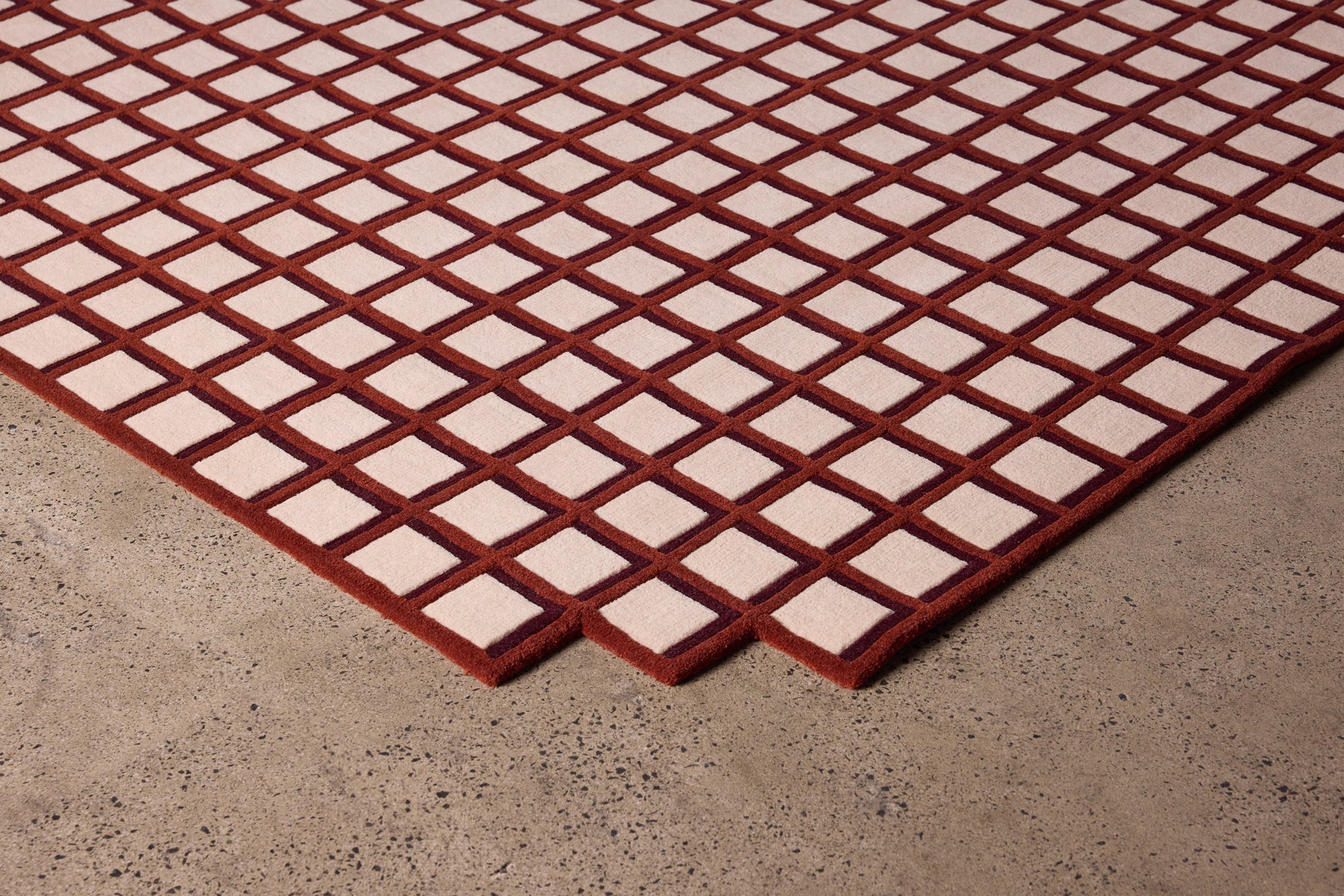 Rich and inviting as a forest of ripe berries, Ora Checkmate Merlot infuses interiors with warmth and depth. Its structured check pattern highlights the intensity of merlot hues, adding both sophistication and a hint of drama. Hand-crafted with care, this rug transforms bold geometry into a luxurious, cozy focal point, bringing the richness of merlot tones to contemporary spaces.