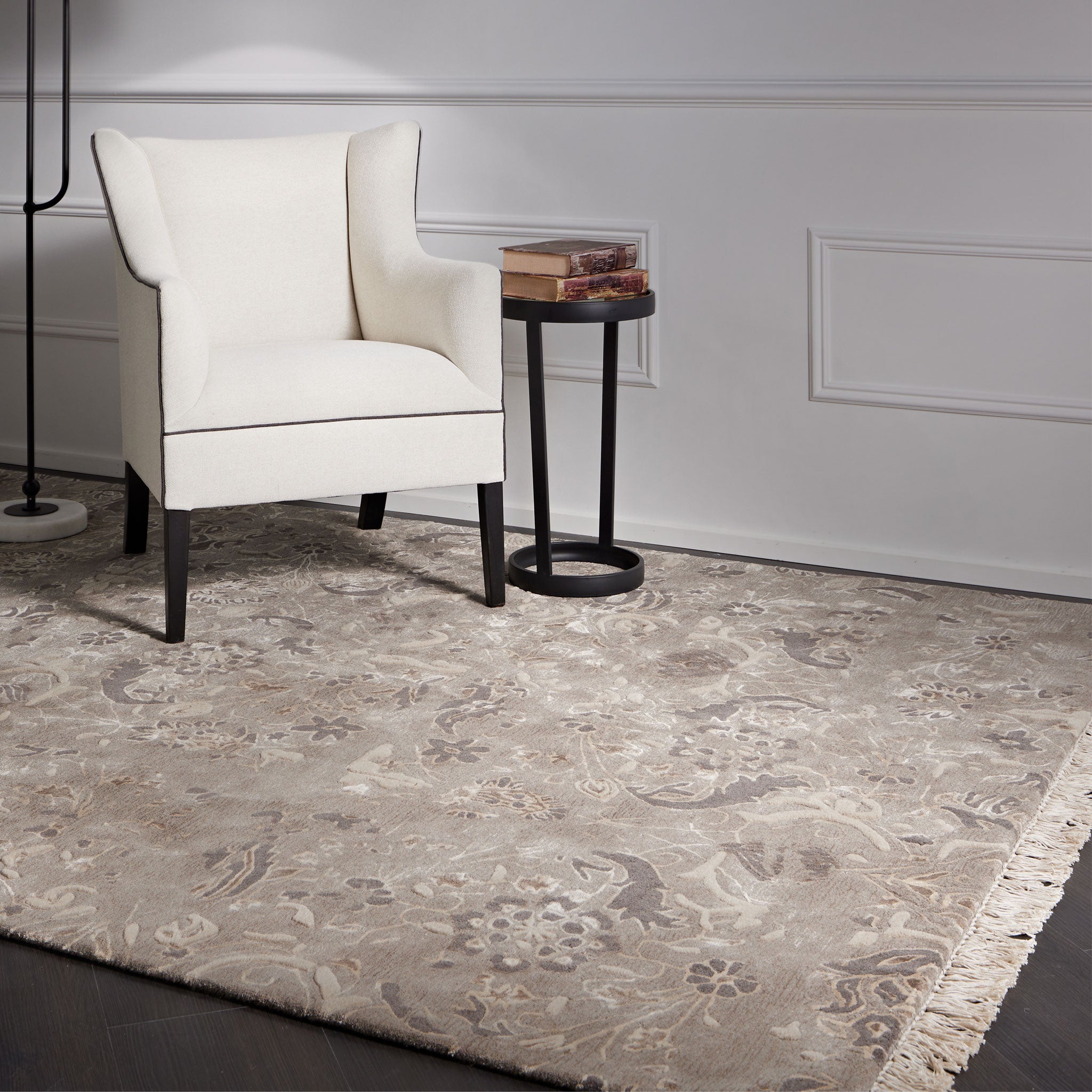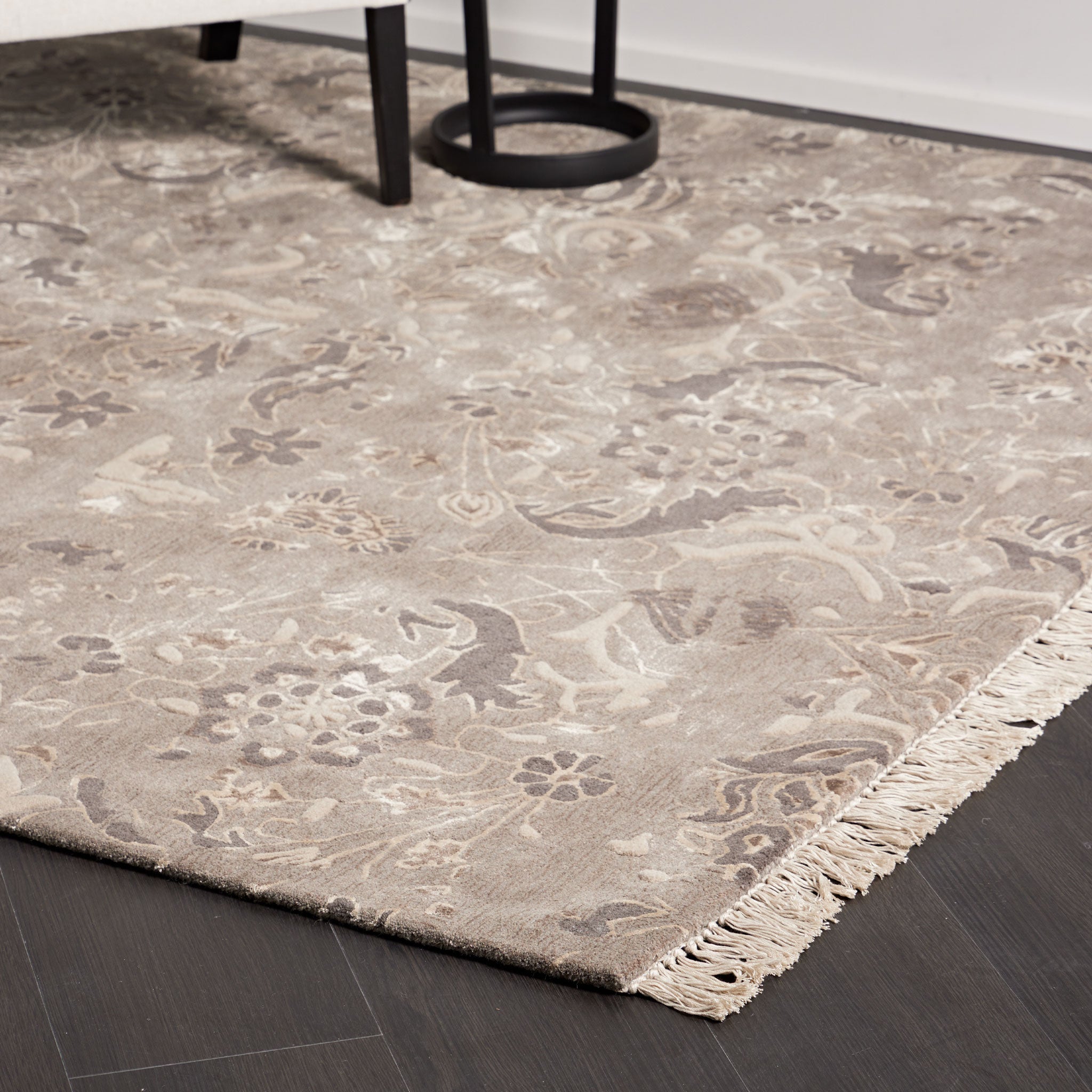 Unfold the captivating allure of the Tappeti Ora Antique Neutral rug, an approachable entry into world-class textile design. This piece is meticulously designed to achieve an aged vintage patina, reflecting the profound beauty of time-worn surfaces in sophisticated neutral hues. An exquisite art-silk fringe detail adds a touch of preserved glamour, elevating its classic appeal.