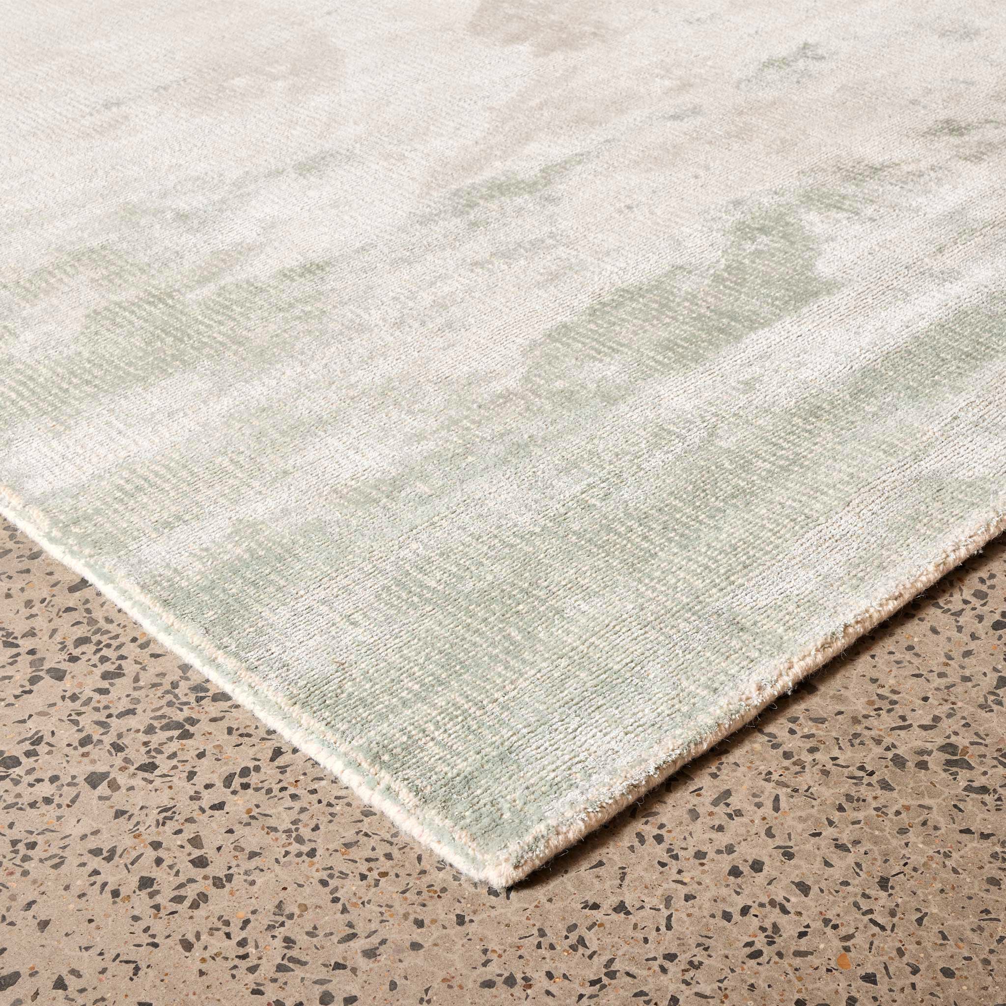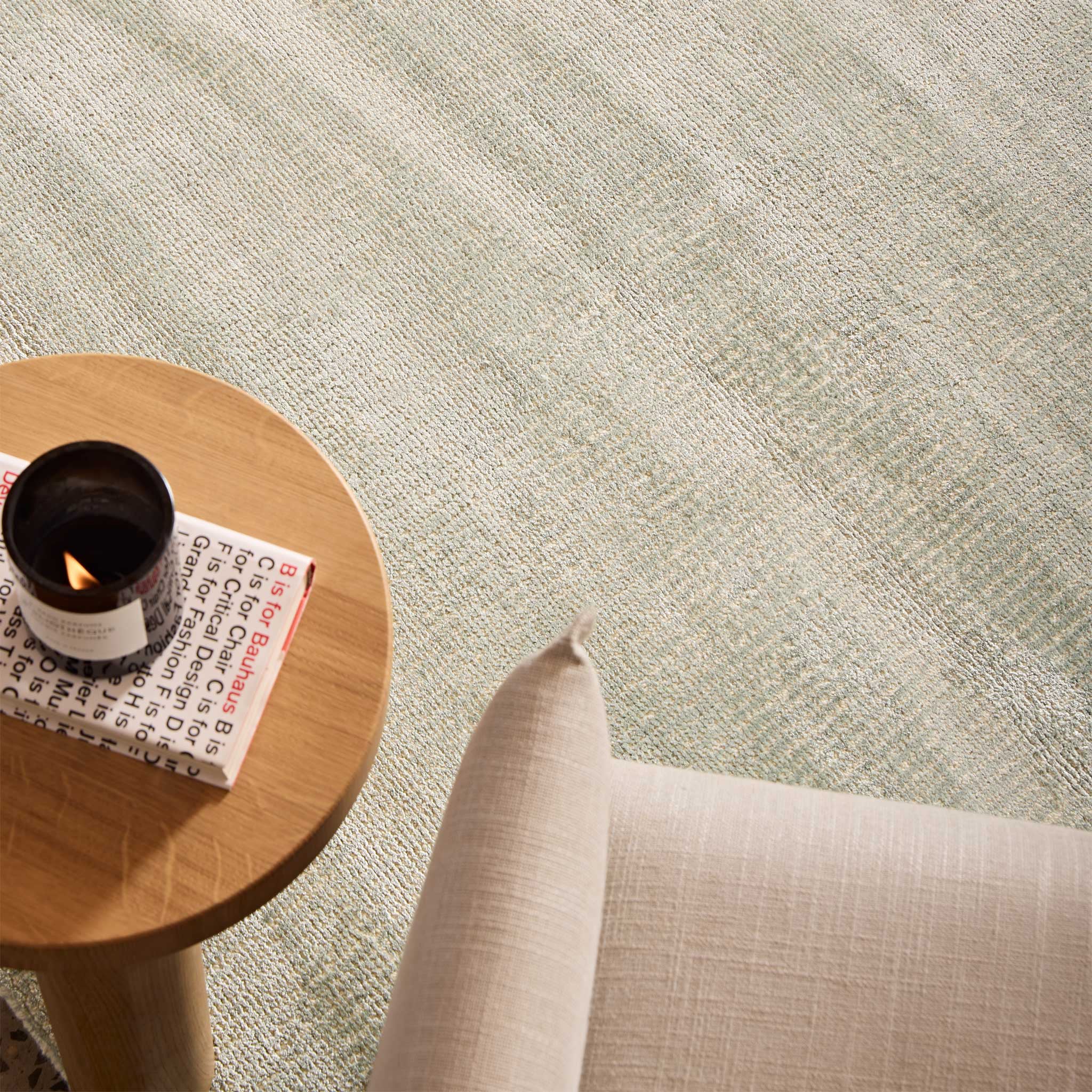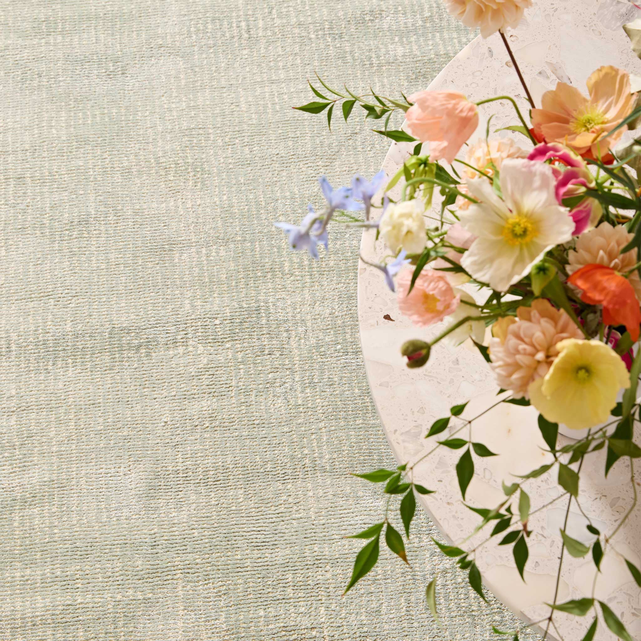 Hand-tufted with exceptional artistry, the Ora Duo Duck Egg rug combines the grounding comfort of wool and the subtle luminosity of art-silk in both loop and cut piles. Manufactured to a pile height of 12mm, its textured surface creates a rich visual depth, highlighting the nuanced dance between the cool blue-green and pure white, much like light plays across a delicate shell. The whisper-soft duck egg blue grid against the clean white base truly brings to life the inherent freshness and serene, gentle allure of a new beginning.