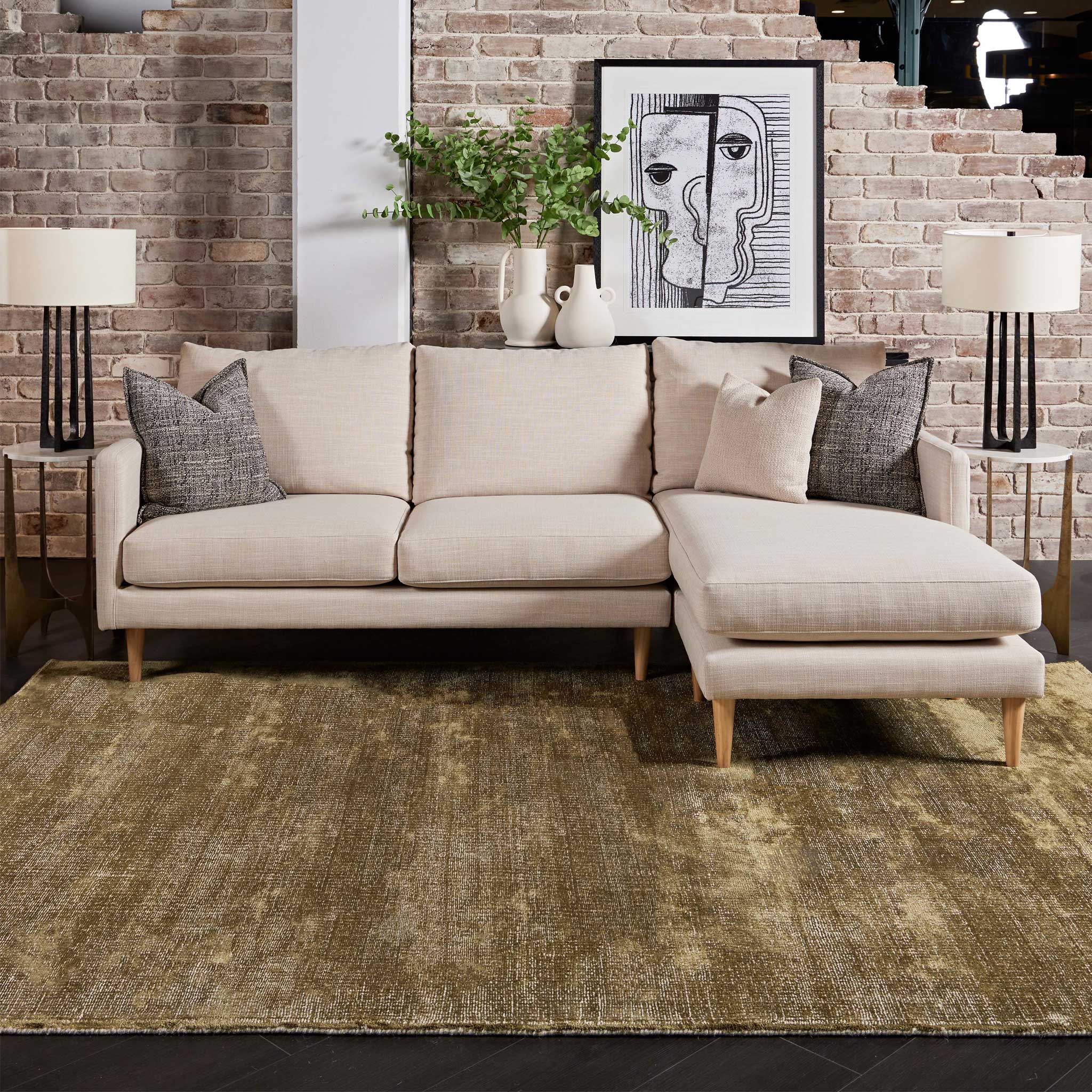 Hand-tufted with exceptional artistry, the Ora Duo Olive rug combines the robust comfort of wool with the subtle luminosity of art-silk, meticulously crafted in both loop and cut piles. Manufactured to a luxurious pile height of 12mm, its textured surface creates an organic play of light and shadow, reminiscent of sunlight dancing through olive branches onto varied ground. The distinct grid of olive art-silk stands in elegant contrast to the white base, bringing to life the inherent beauty and textural richness of an olive orchard.