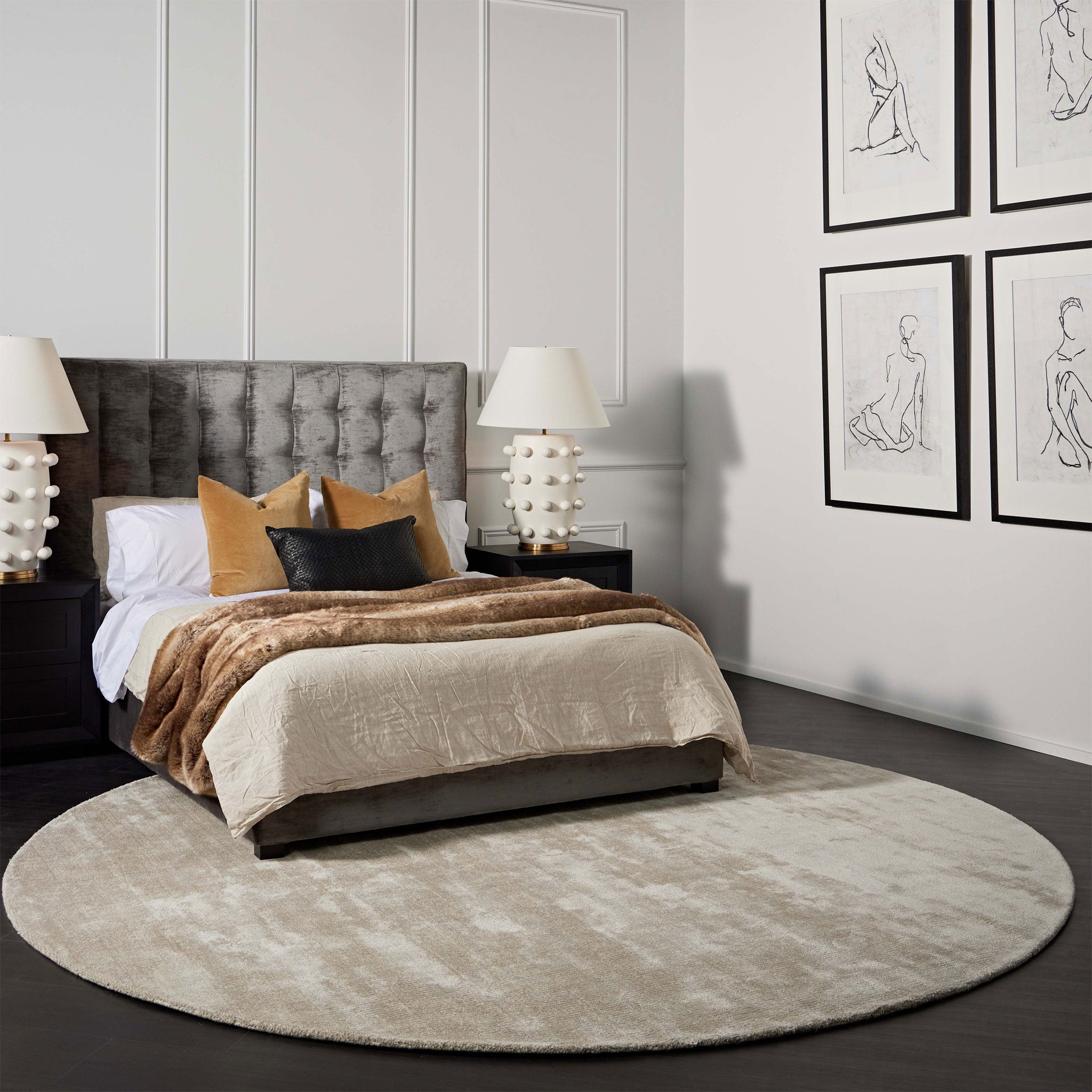 Hand-tufted with exceptional artistry, the Ora Duo Stone rug combines the grounding comfort of wool and the subtle luminosity of art-silk in both loop and cut piles. Manufactured to a pile height of 12mm, its textured surface creates a rich visual depth, highlighting the nuanced interaction between the solid, earthy tones and crisp white, much like mineral veins running through rock. The robust stone-hued grid against the clean white base truly brings to life the inherent resilience and grounded elegance of natural bedrock.