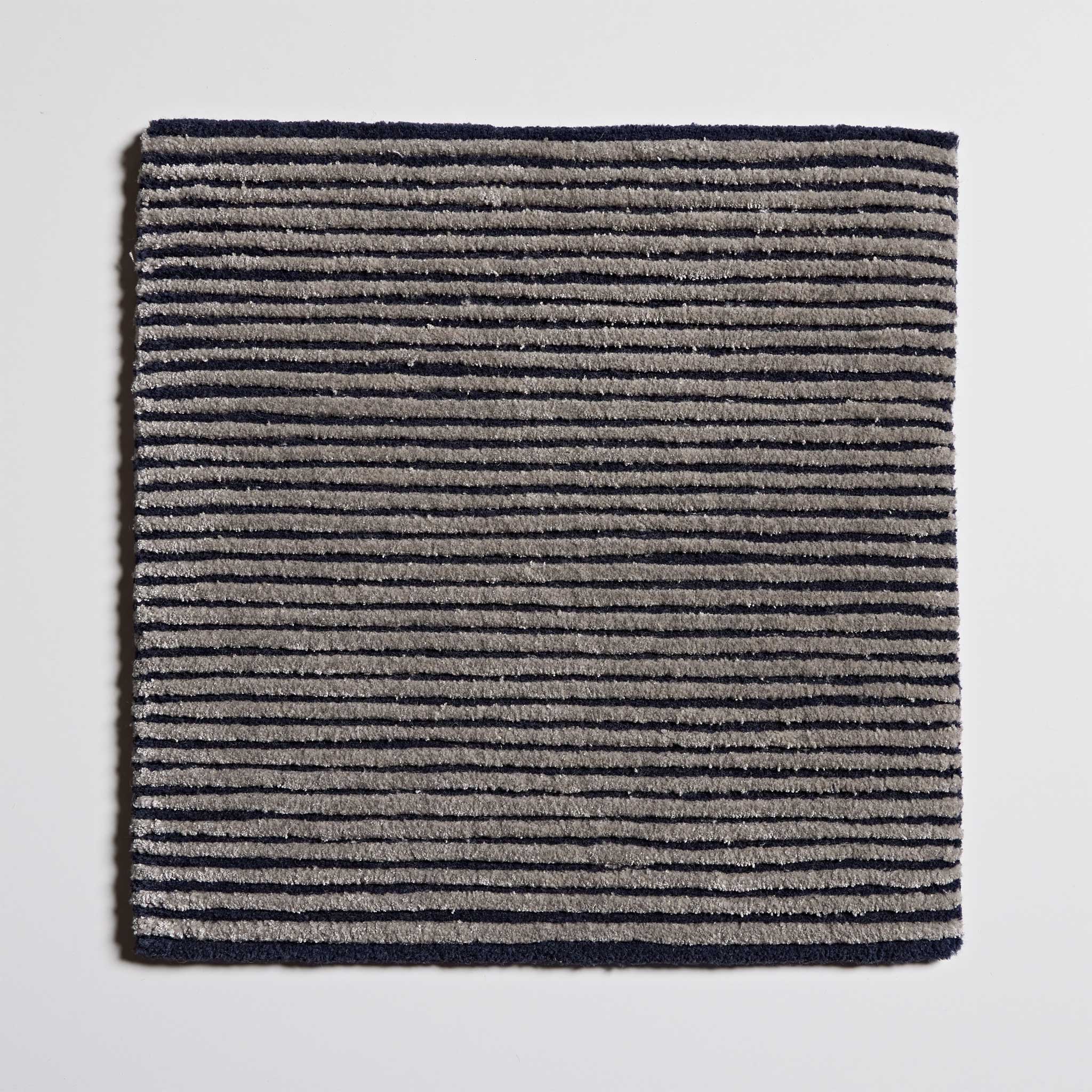 Hand-tufted with exceptional artistry, the Ora High Low Silver/Midnight rug combines the grounding depth of wool and the ethereal luminosity of art-silk in both loop and cut piles. Manufactured to a refined pile height of 9mm with distinct 12mm raised lines, its construction creates a captivating textural landscape. The raised silver lines provide a stunning visual relief, appearing to shimmer and float above the midnight base, much like celestial pathways unfurling across the darkest expanse, offering a luxurious silken appearance.