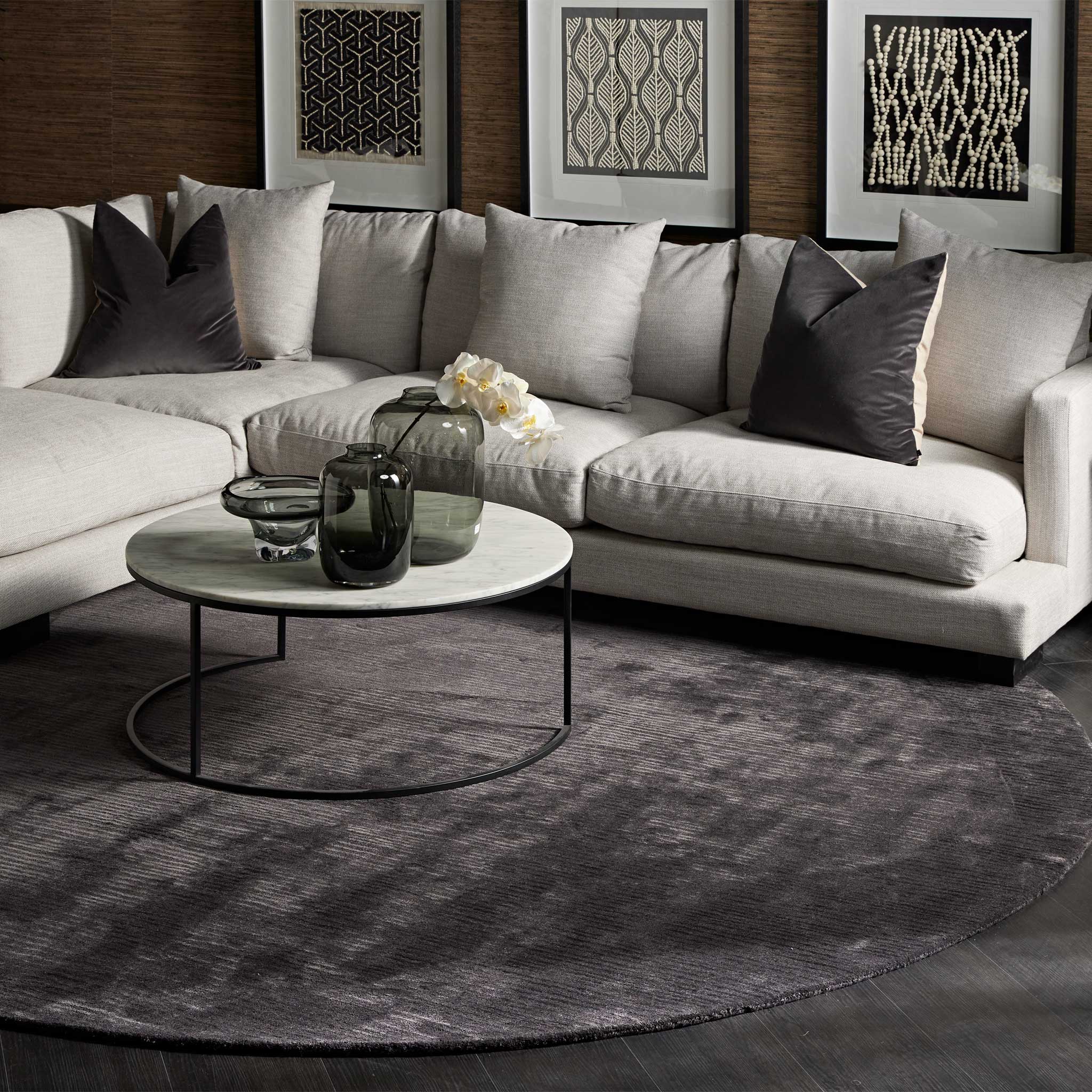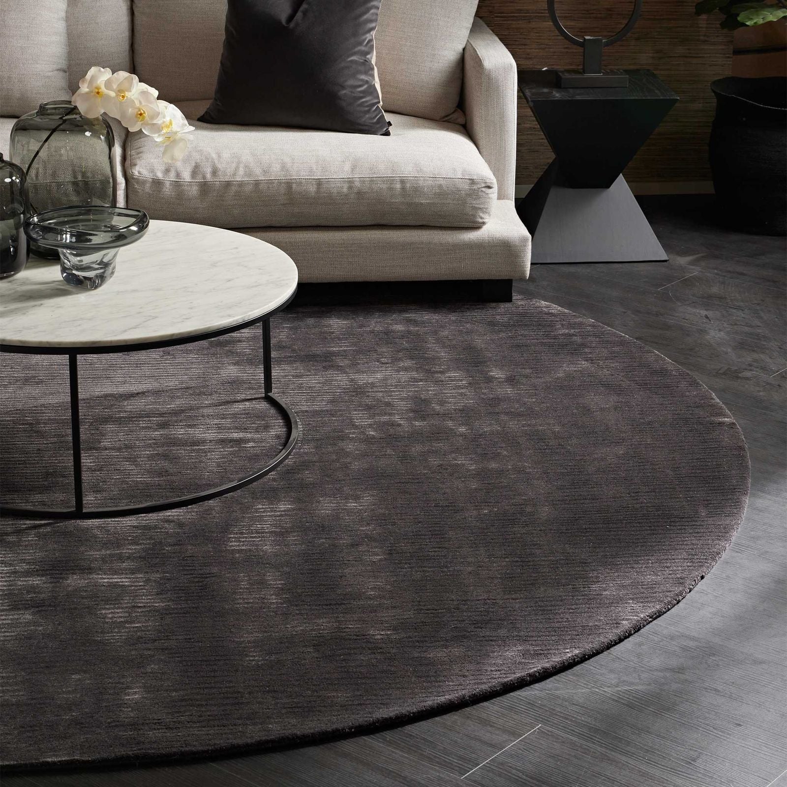 Hand-tufted with exceptional artistry, the Ora Linea Luxe Charcoal rug combines the robust comfort of wool with the luminous elegance of art-silk in a luxurious cut pile. Manufactured to a pile height of 12mm and a substantial weight of 3.00kg/m2, this considered blend allows the intrinsically organic lines to surface, creating a distinctive texture that mirrors the subtle currents beneath a moonless sky. The profound charcoal hue, complemented by the art-silk's delicate shimmer, provides a versatile and commanding foundation for any interior seeking both sophisticated depth and dynamic visual interest.