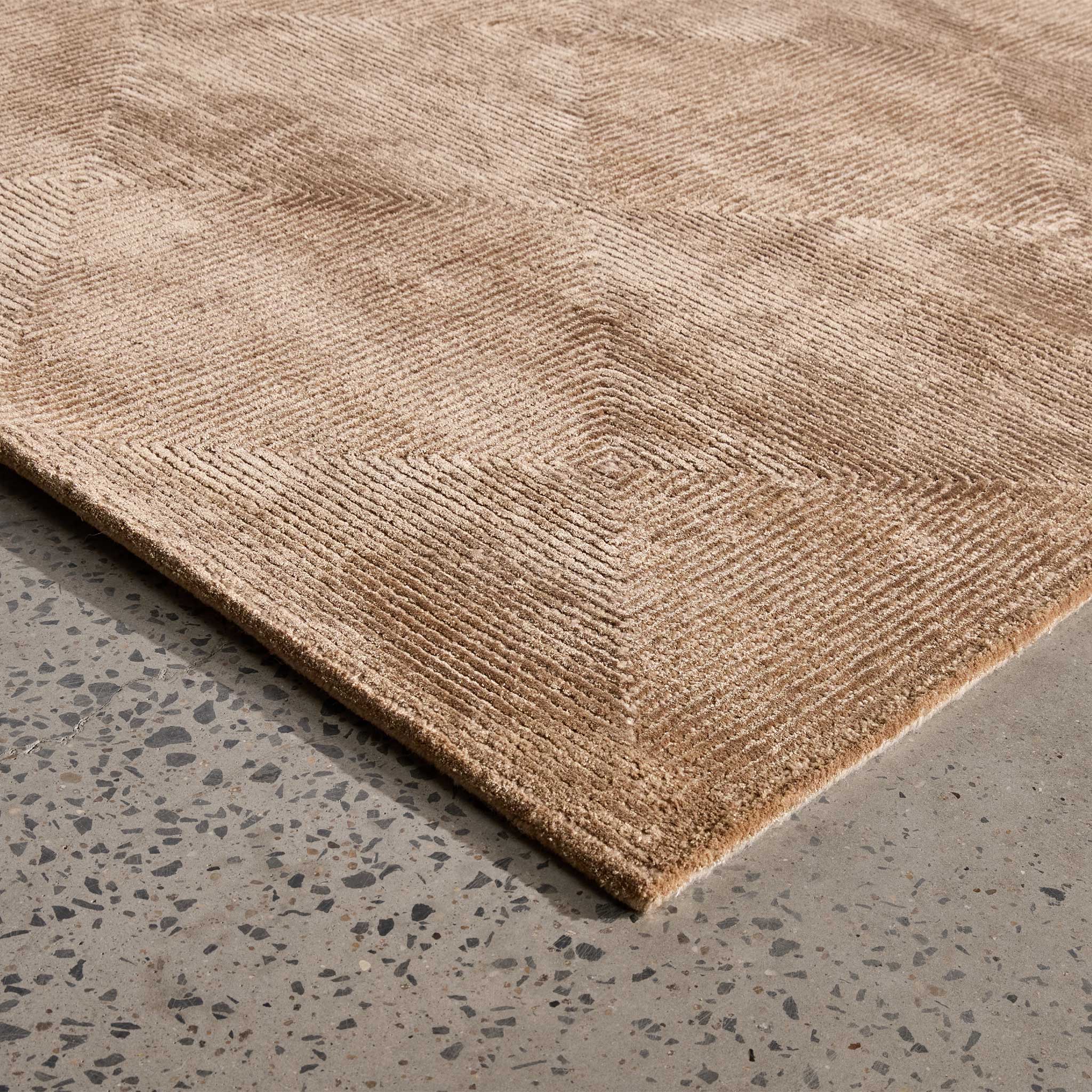 Hand-tufted with exceptional artistry, the Ora Matteo rug combines the grounded comfort of wool and the subtle luminosity of art-silk in both loop and cut piles. Manufactured to a pile height of 12mm and a weight of 3.00kg/m2, its construction creates a rich, textural surface. The interplay of these varying pile heights emphasizes the geometric precision of the tessellation, allowing light and shadow to articulate each perfectly interlocking segment, creating a tactile rhythm that reinforces the rug's seamless visual flow.