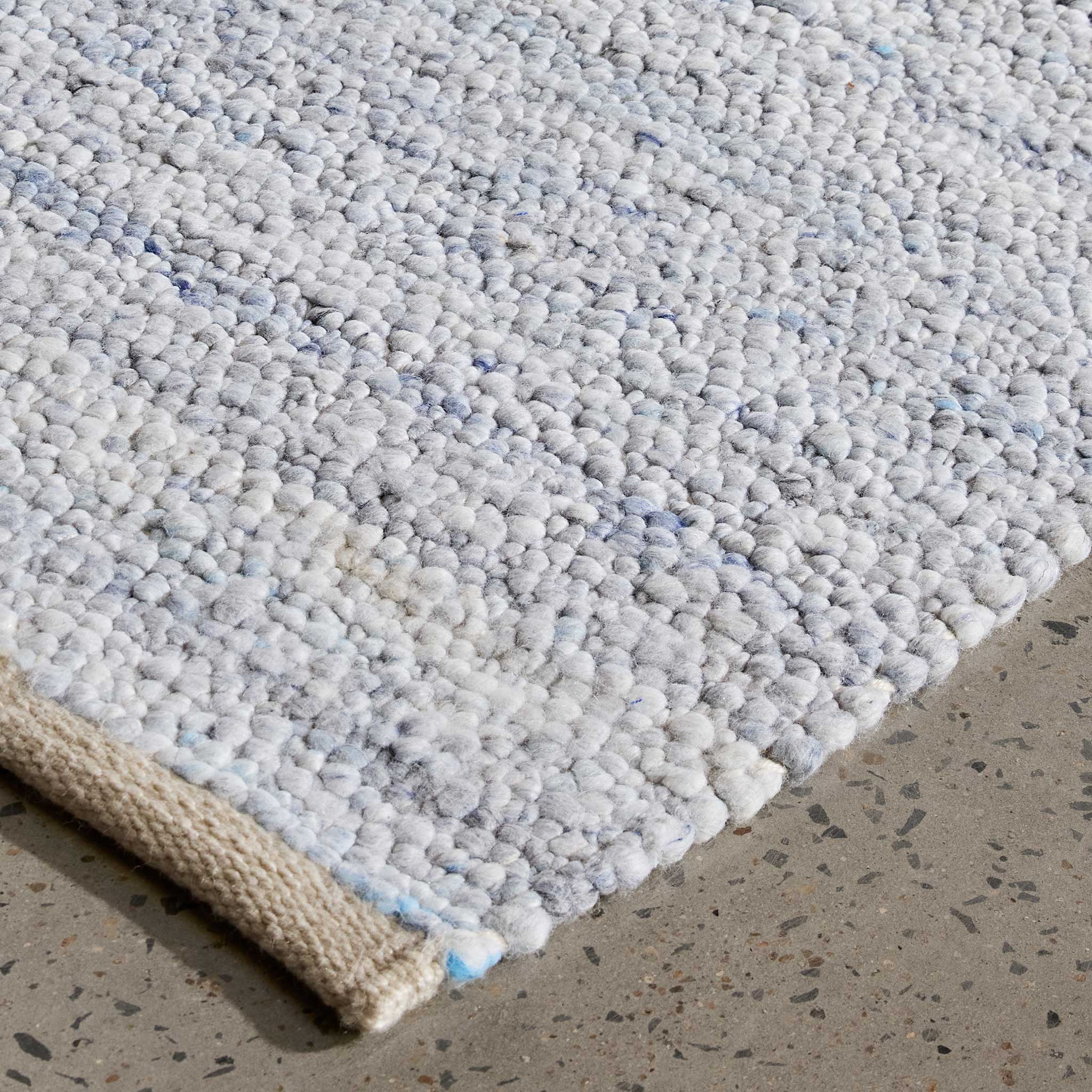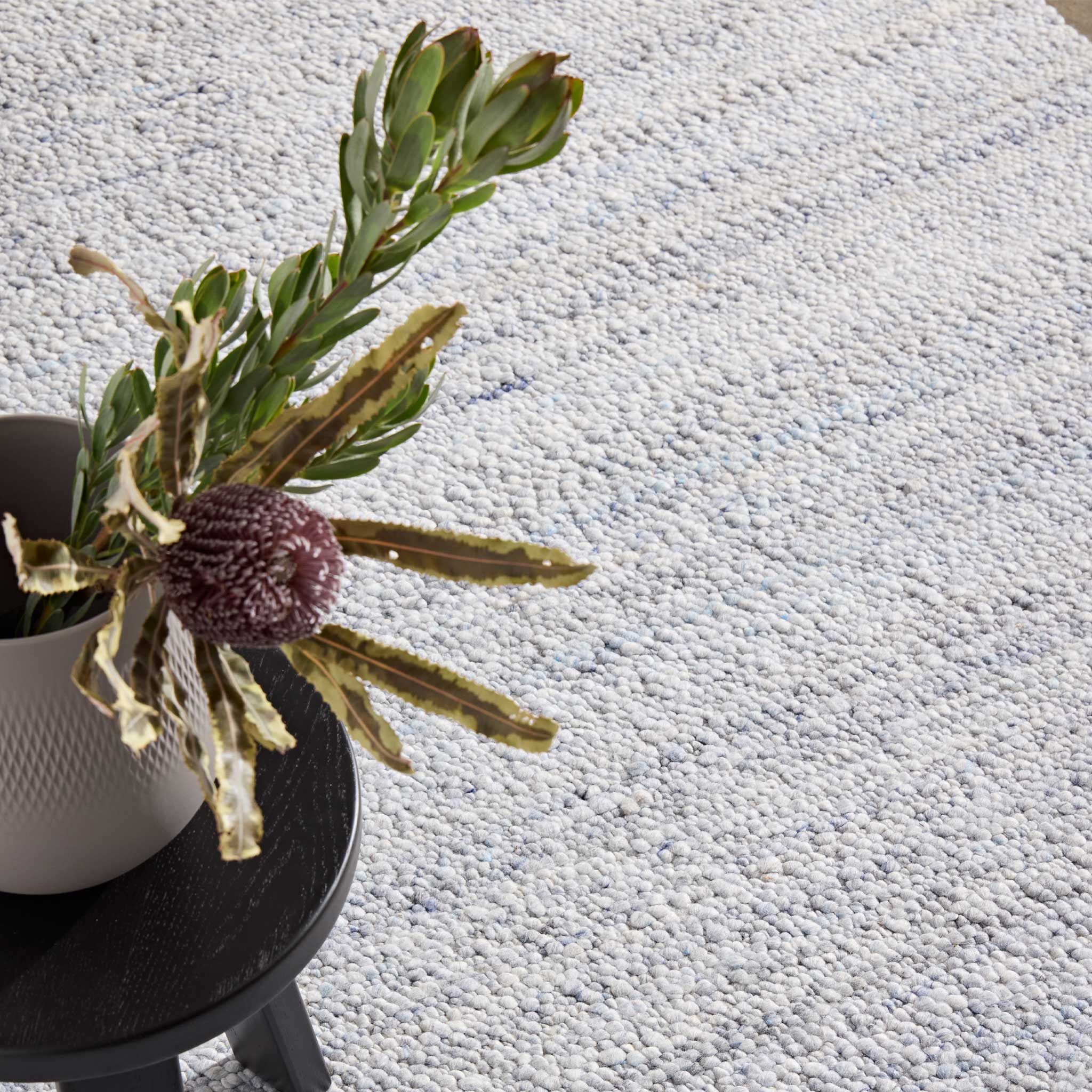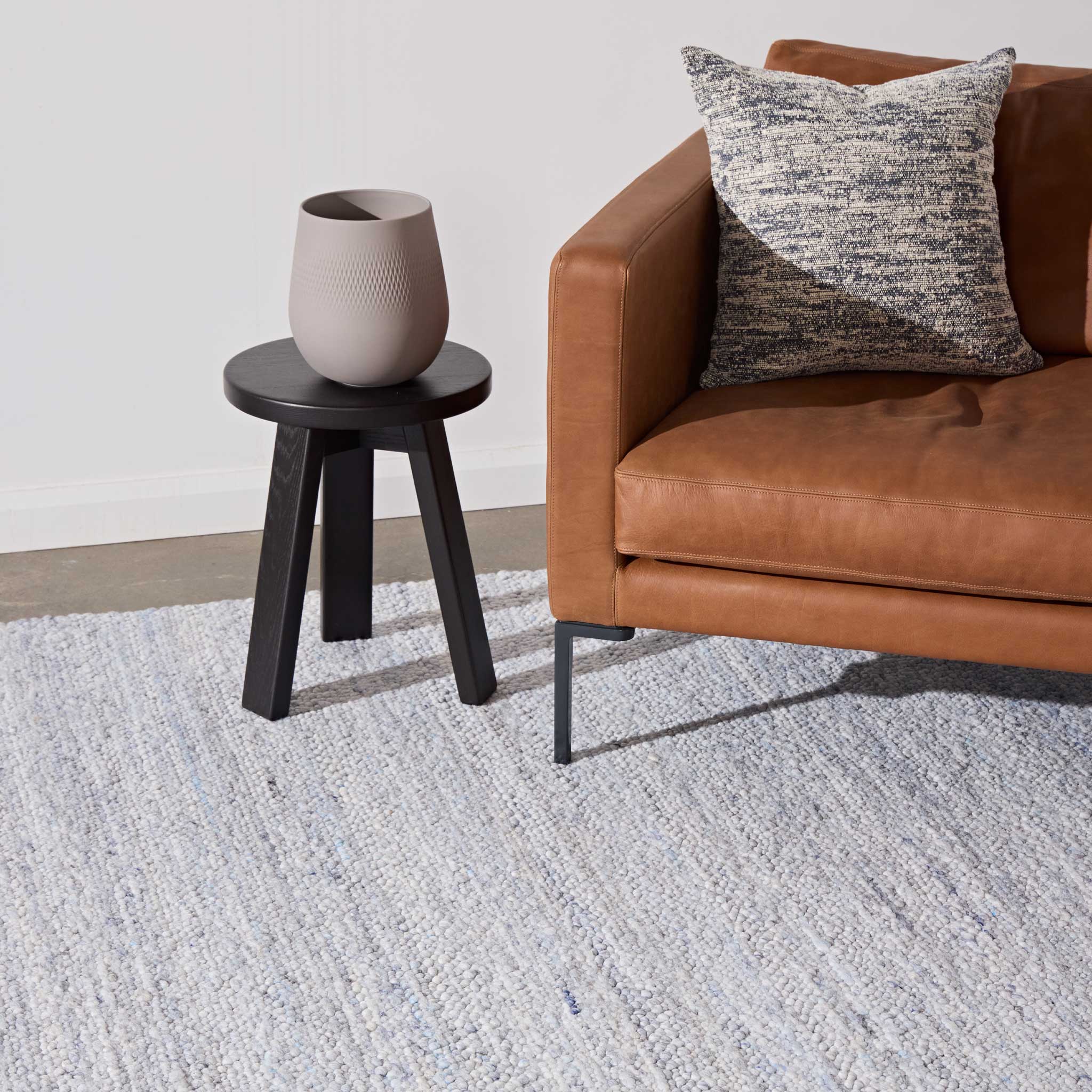 Crafted with exceptional care, the Ora Palermo Blue rug is hand-woven in 100% felted wool loop pile, its dense fibers providing a distinctive and inviting surface reminiscent of ancient, robust walls touched by the sea breeze. Manufactured to a comforting pile height of 11mm and a substantial weight of 3.00kg/m2, its irregular texture subtly mirrors the organic contours of time-worn stonework, while the integrated hints of blue recall the mesmerizing azure of Sicily’s surrounding waters, providing a versatile foundation for any environment.