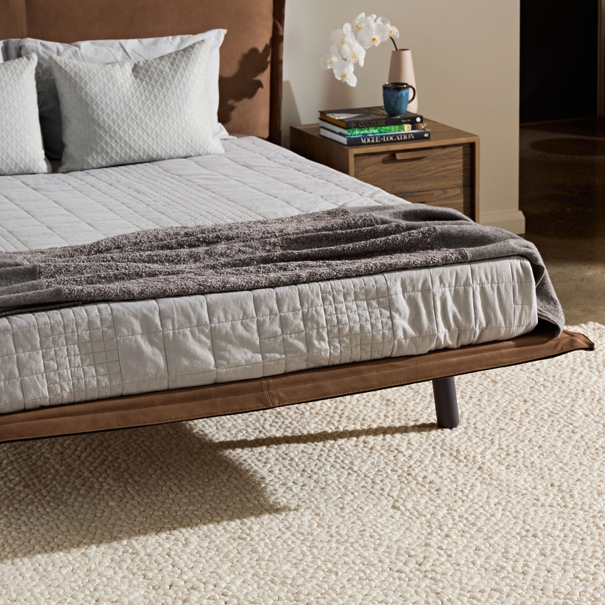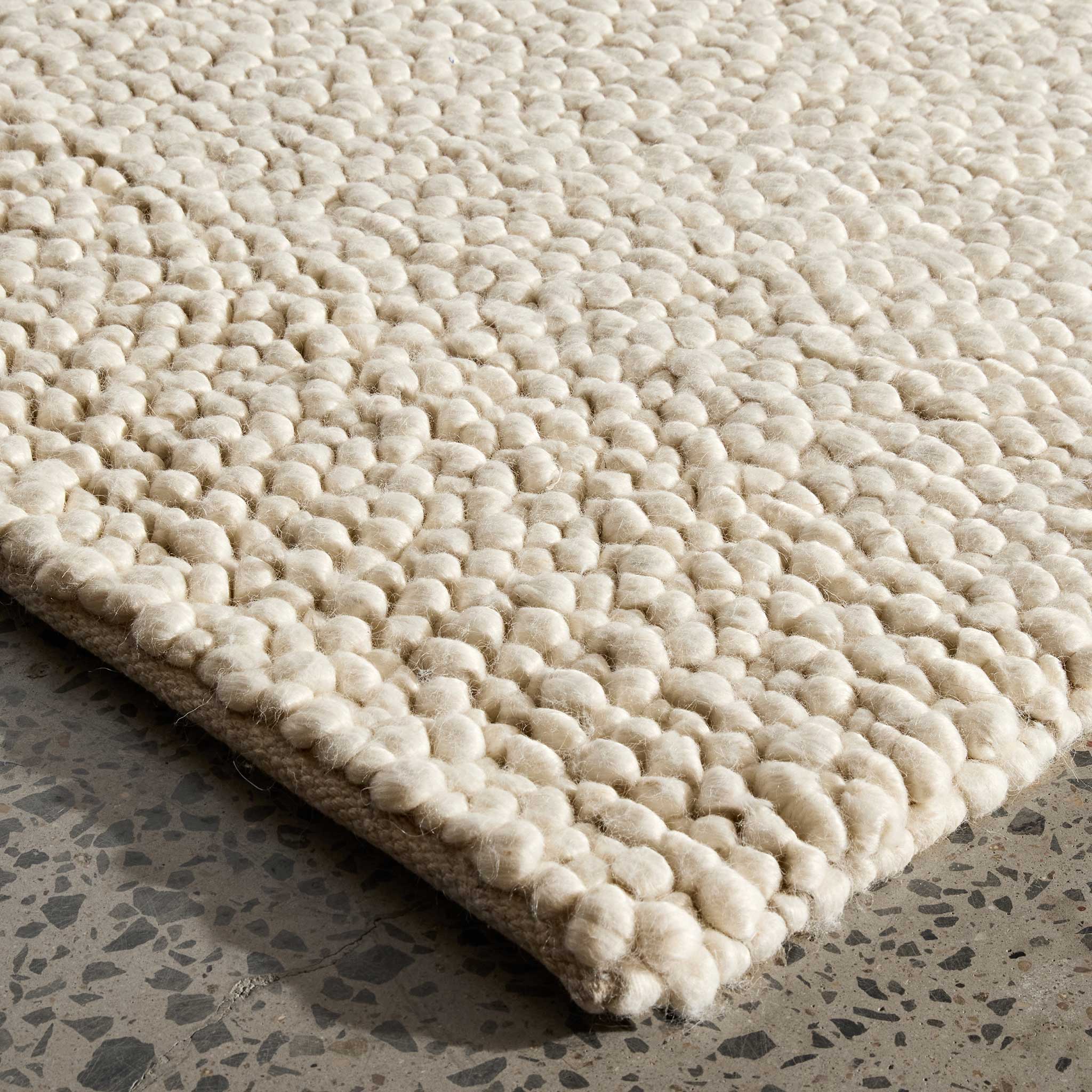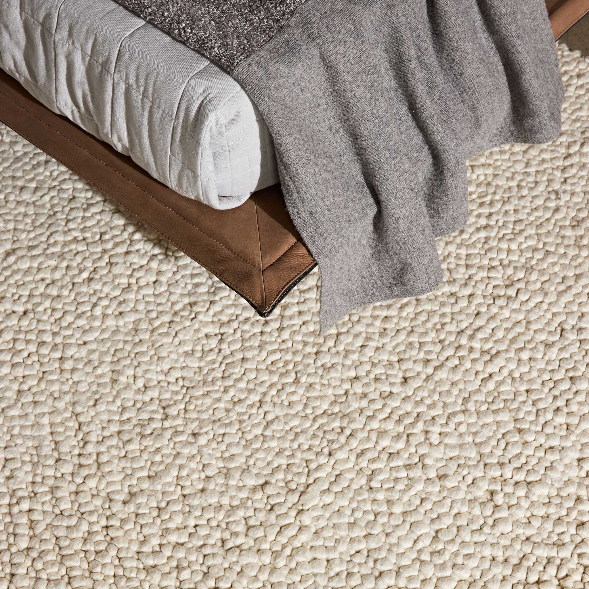Crafted with exceptional care, the Ora Sierra White rug is hand-woven in 100% felted wool, its dense fibers providing a distinctive and inviting surface reminiscent of freshly fallen snow or glacial formations. Manufactured to a comforting pile height of 11mm and a substantial weight of 3.00kg/m2, its irregular texture subtly mirrors the rugged terrain of a mountain slope, while the pure white hue brings a sense of expansive calm and refined sophistication to any environment.