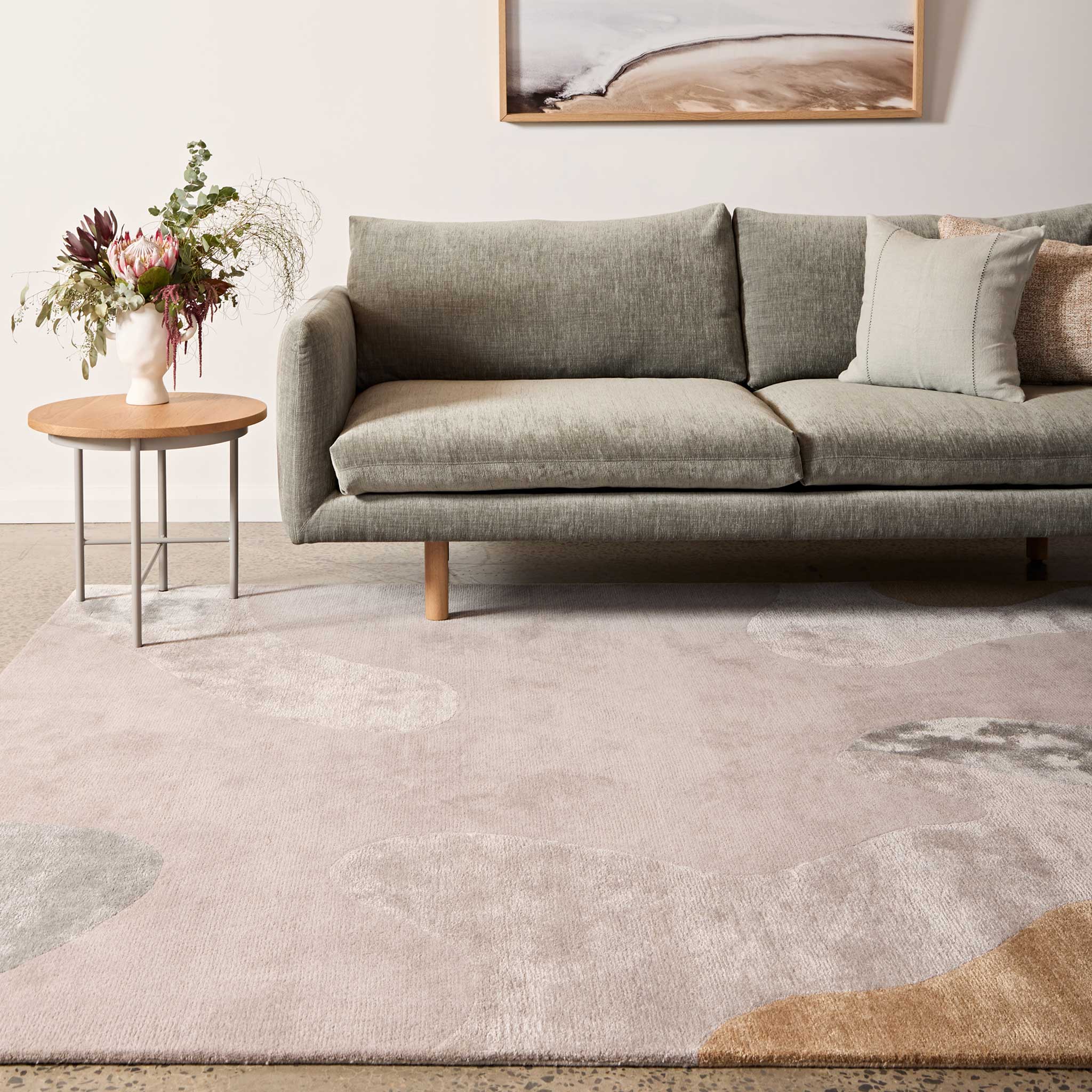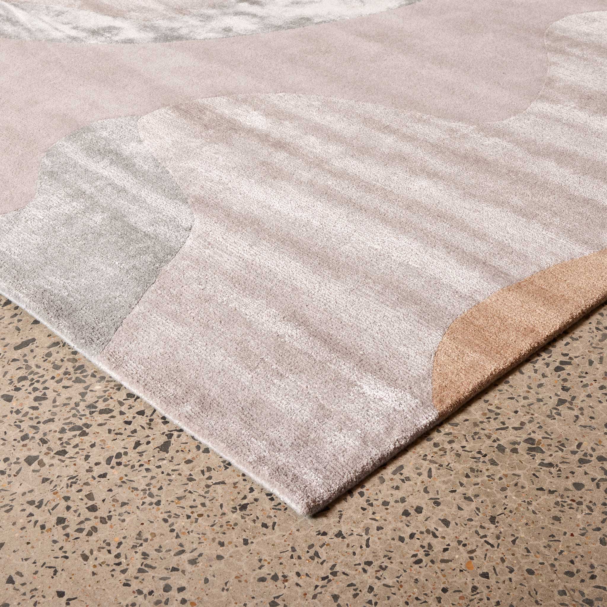 Hand-woven in wool and art-silk in cut piles, the Ora Swirl rug offers a sumptuous underfoot experience. Manufactured to a pile height of 12mm, its construction creates a plush surface that enhances the rug's visual motion. The interplay between the grounding comfort of wool and the subtle shimmer of art-silk allows light to dance across the curving forms, accentuating their graceful contours and creating the illusion of gentle, perpetual motion.