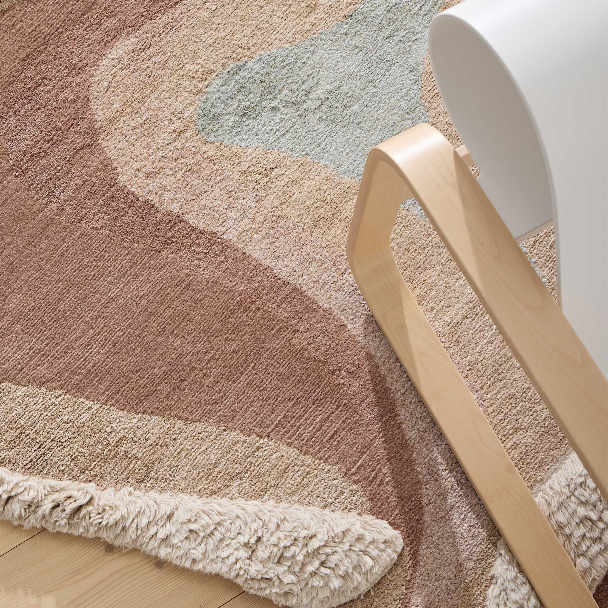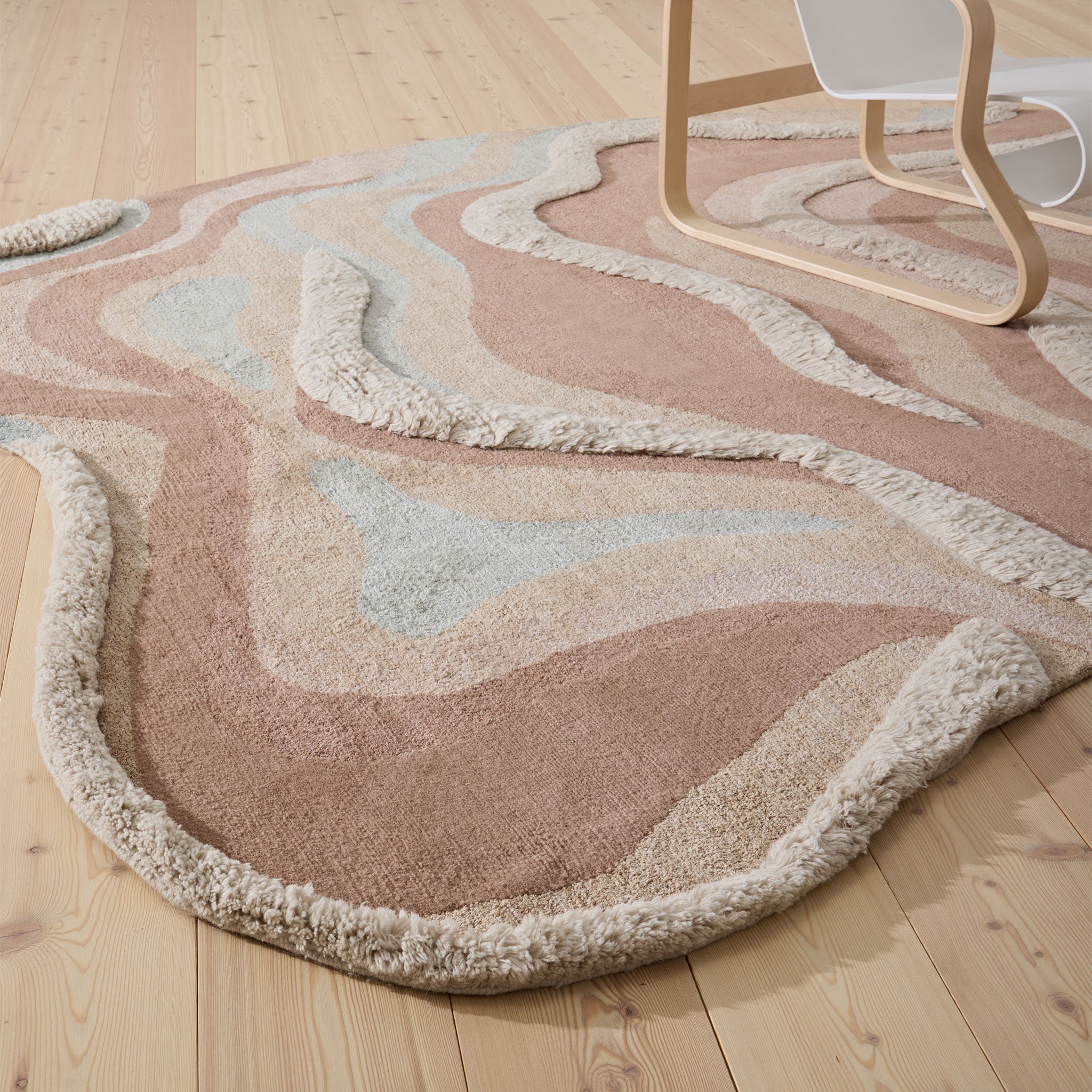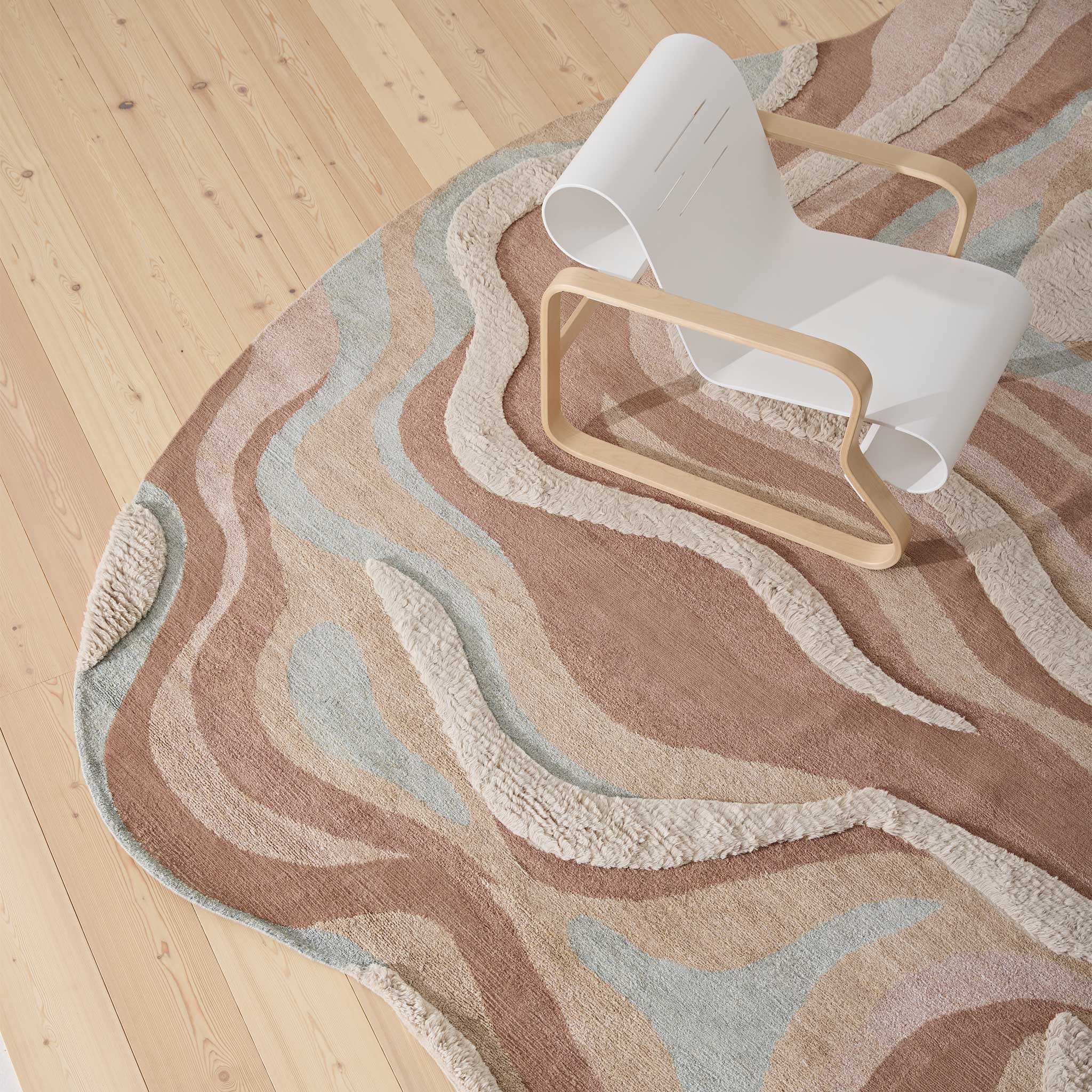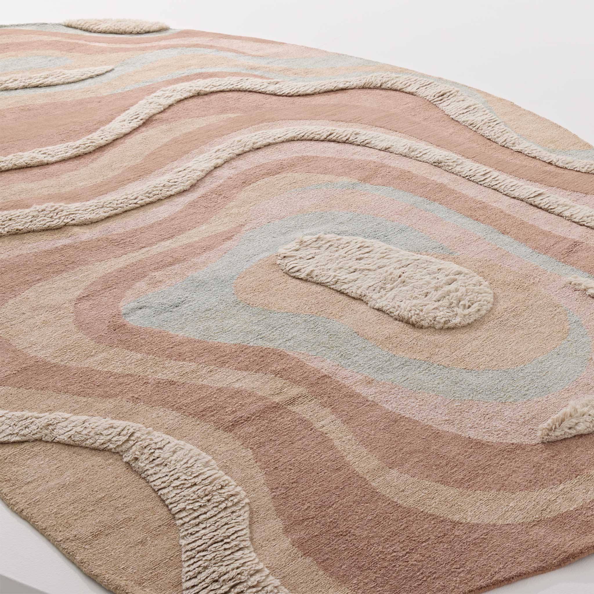Behold the Petra Rose rug from Tappeti, a textile marvel hand-knotted to echo the breathtaking artistry of Jordan's ancient "Rose City." A swirling geological pattern, born from the union of Tibetan wool, hemp, and art-silk, unfolds before your eyes, evoking the very canyons carved by time. The interplay of long shaggy, regular, and lowered cut pile heights creates a tangible landscape, mirroring the carved stone textures that have stood for millennia. Soft, earthy rose shades infuse this creation with the warm hues that bathe Petra's majestic architecture in a perpetual twilight glow.