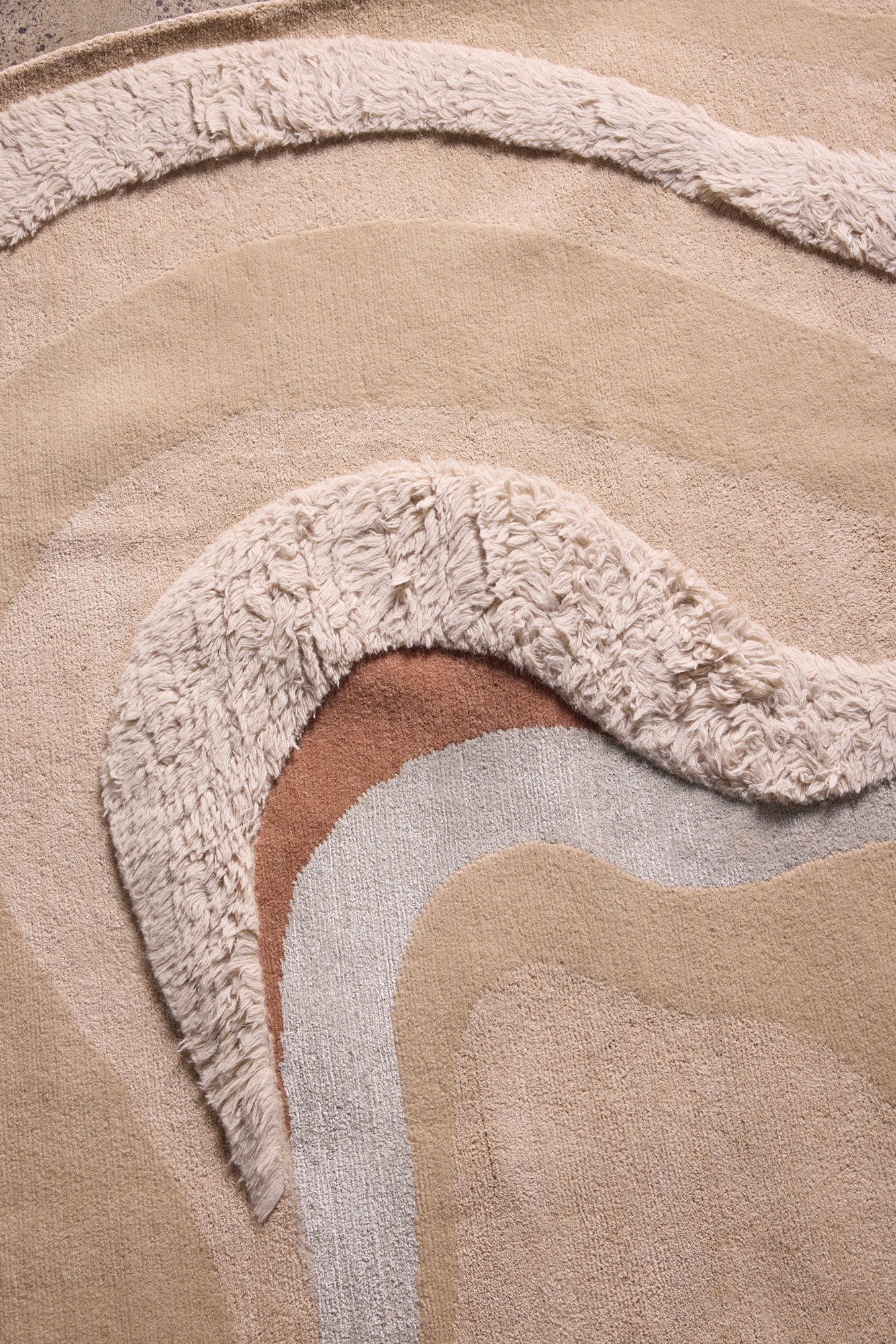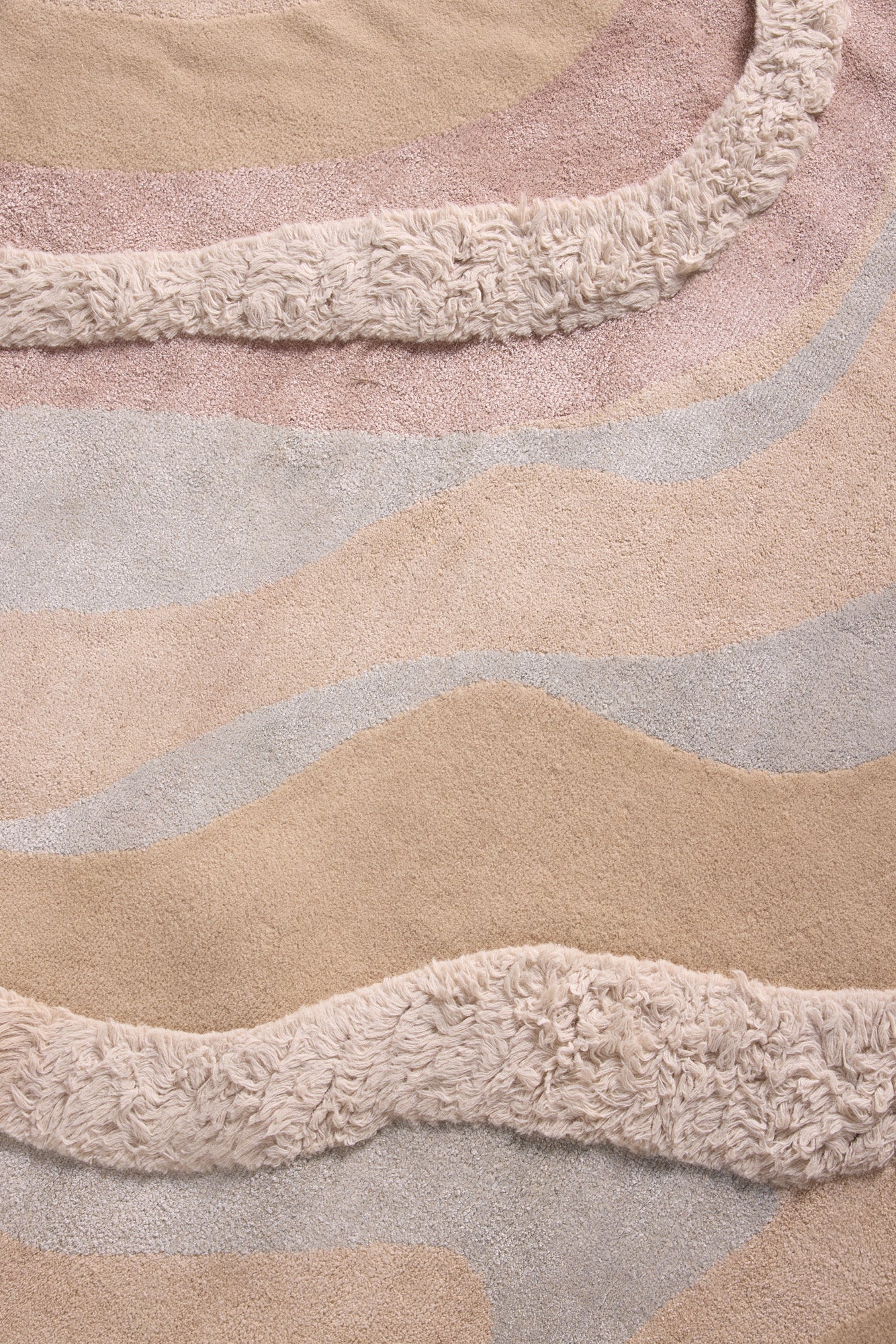 Behold the Petra Rose rug from Tappeti, a textile marvel hand-knotted to echo the breathtaking artistry of Jordan's ancient "Rose City." A swirling geological pattern, born from the union of Tibetan wool, hemp, and art-silk, unfolds before your eyes, evoking the very canyons carved by time. The interplay of long shaggy, regular, and lowered cut pile heights creates a tangible landscape, mirroring the carved stone textures that have stood for millennia. Soft, earthy rose shades infuse this creation with the warm hues that bathe Petra's majestic architecture in a perpetual twilight glow.