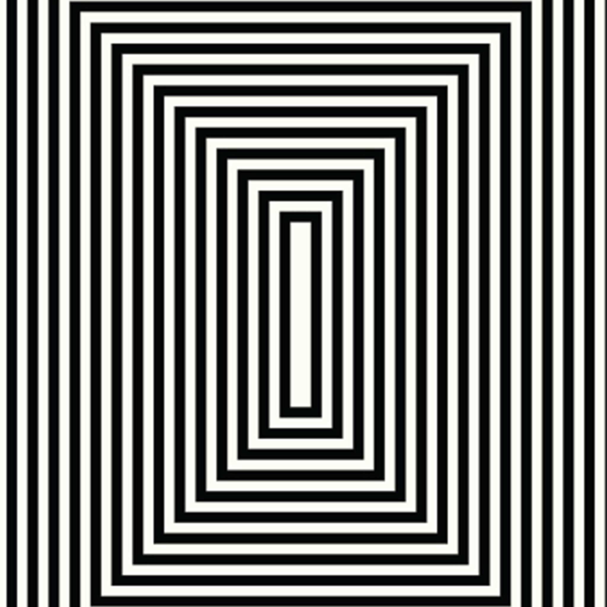 Concentric squares in graphic black and white in mixed textures and fibres.