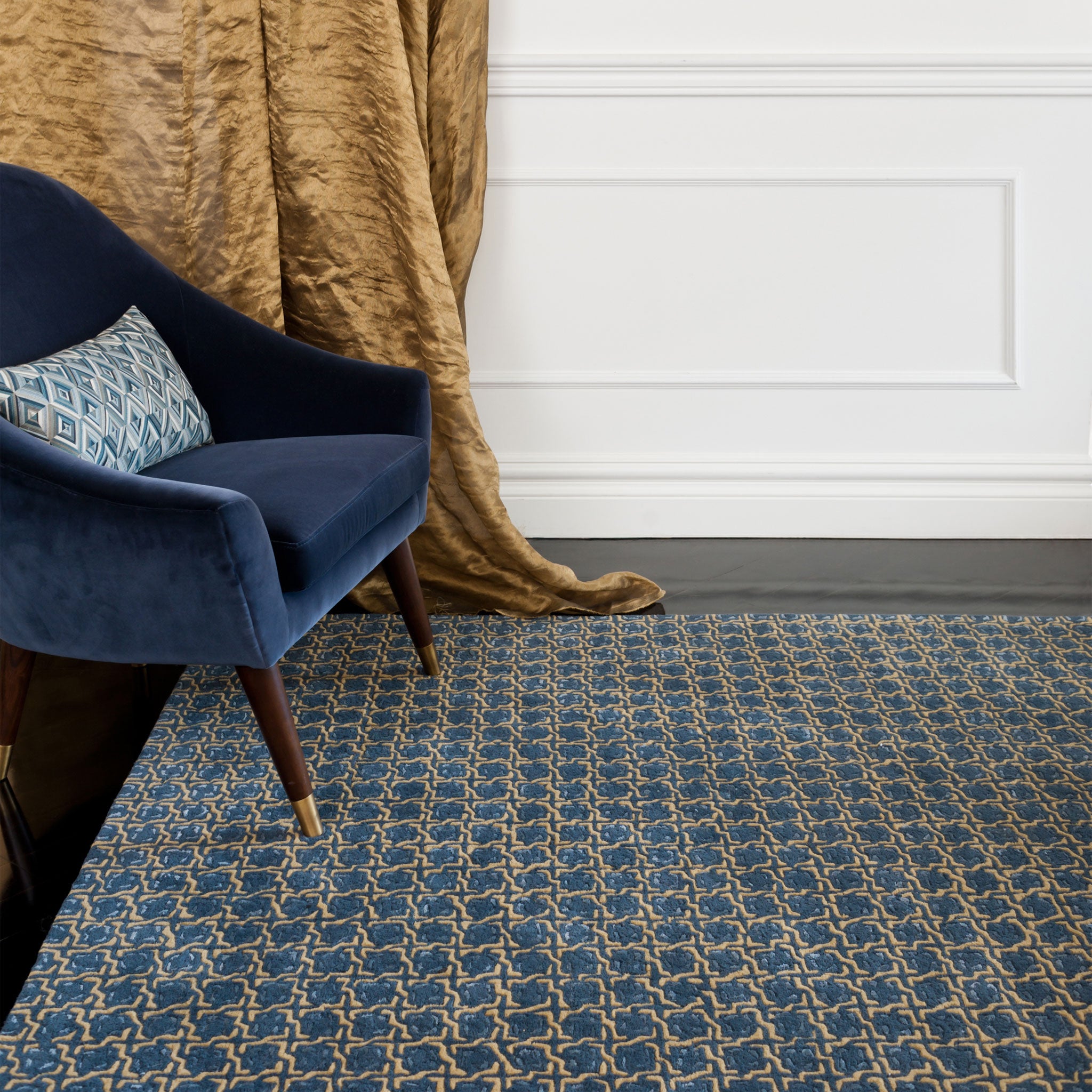 Rug photographed is hand-tufted in New Zealand wool and art-silk.