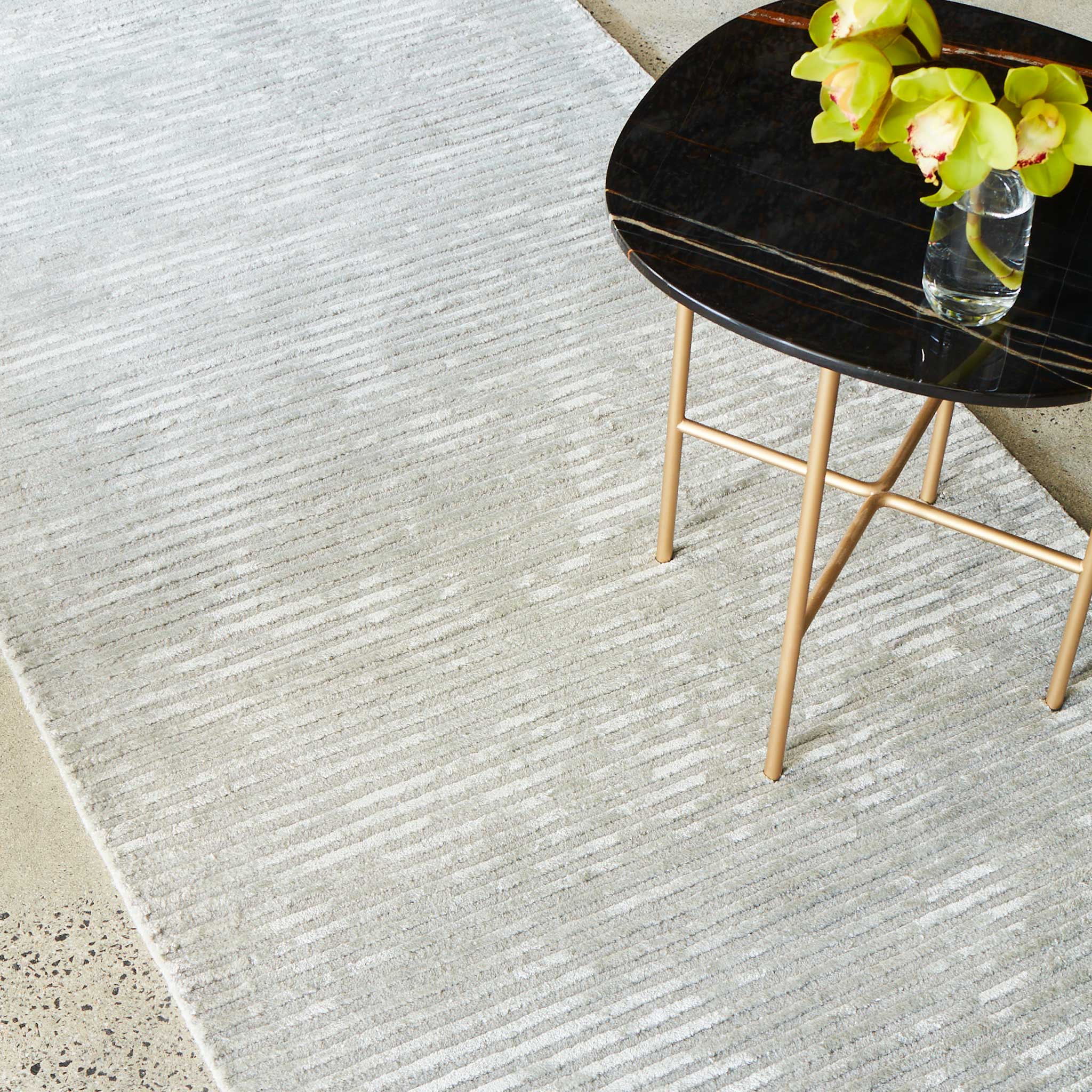 Hand-tufted in wool and art-silk.