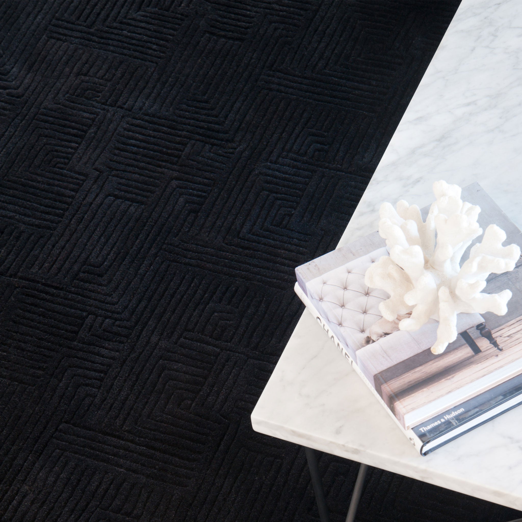 Rug photographed is hand-tufted in New Zealand wool and art-silk.