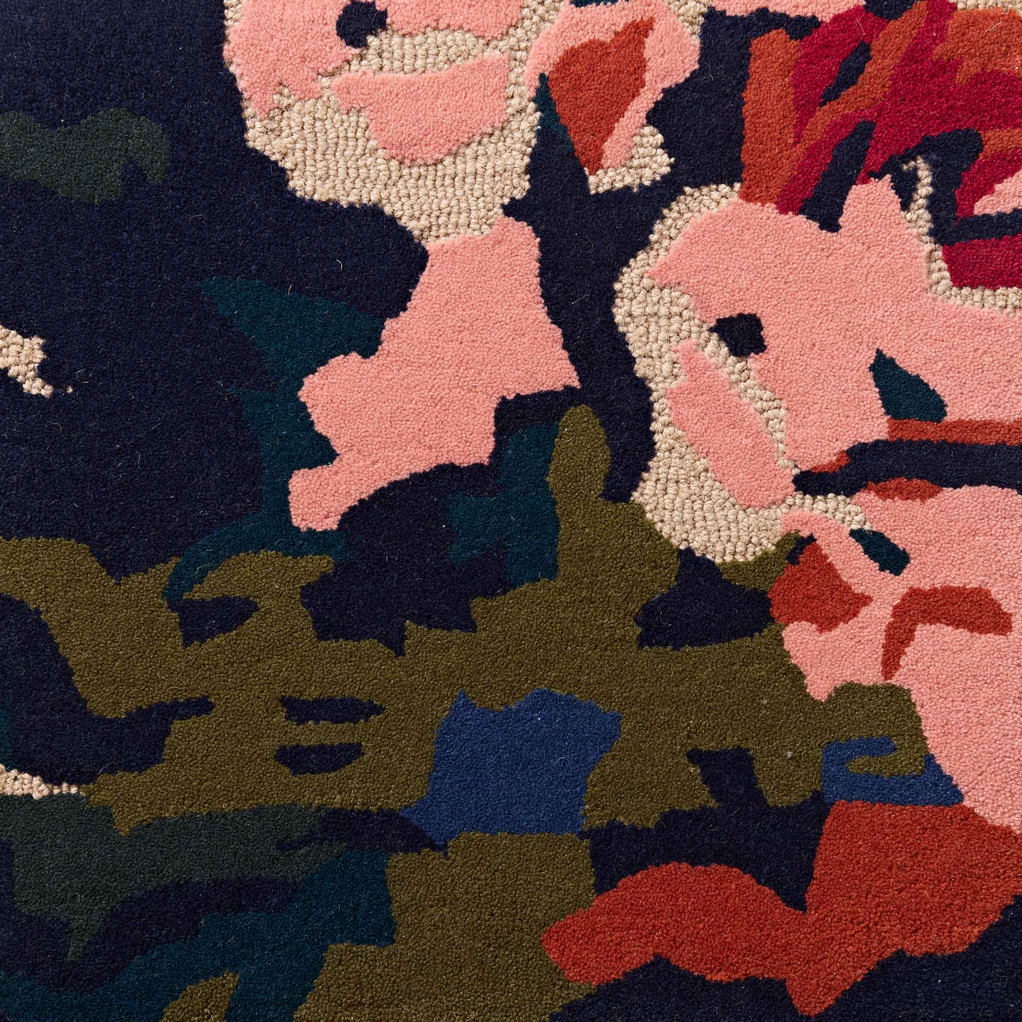“Inspired by 18th century European still life paintings. This rug was designed with the history in mind, a merging of time periods and artistic styles to seemingly tell the story of a well worn and much loved rug.” – Kerrie Brown